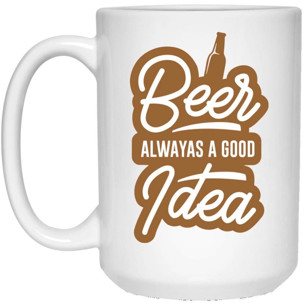 Beer Always A Good Idea Beer Mug Gift Funny Beer Mug Coffee Mug Gifts For Him Product Details.. This high quality 11oz. ceramic white mug has a premium hard coat that provides crisp and vibrant color reproduction sure to last for years. Perfect for all hot & cold beverages. The highest quality printing possible is used. It will never fade no matter how many times you wash it. Material: 100% Ceramic. Print both sides. Dishwasher and Microwave Safe. High Gloss + Premium White Finish. Printed in the U.S.A. Personalized & Custom. We support personalized and custom mug to add custom, when placing an order, you can add notes to the "order note" in shipping address section. Also you can contact us directly via message. Shipping Info. Ready to ship in 1 to 2 business days, All products are made-to-order and proudly printed in the United States. Shipped by USPS and DHL, You will receive your order in 5-7 days. Replace & Refund. All products are defective during shipping broken, chipped will be replaced free of charge. You are not satisfied with the product, we will refund 100% money to you. If any other issues arise, please do not hesitate to message, we would be more than happy to assist you.