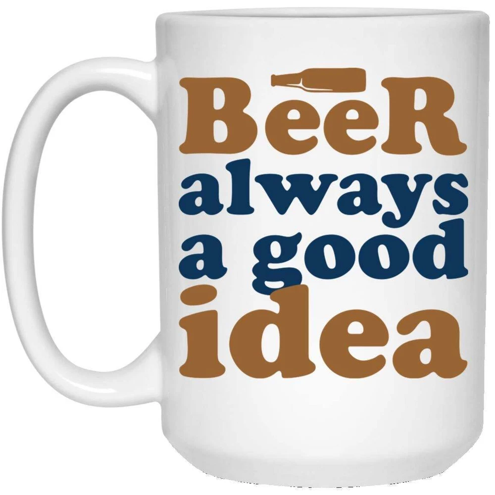 Beer Always A Good Idea Beer Mug Gift Funny Beer Mug Coffee Mug Gifts For Him Product Details.. This high quality 11oz. ceramic white mug has a premium hard coat that provides crisp and vibrant color reproduction sure to last for years. Perfect for all hot & cold beverages. The highest quality printing possible is used. It will never fade no matter how many times you wash it. Material: 100% Ceramic. Print both sides. Dishwasher and Microwave Safe. High Gloss + Premium White Finish. Printed in the U.S.A. Personalized & Custom. We support personalized and custom mug to add custom, when placing an order, you can add notes to the "order note" in shipping address section. Also you can contact us directly via message. Shipping Info. Ready to ship in 1 to 2 business days, All products are made-to-order and proudly printed in the United States. Shipped by USPS and DHL, You will receive your order in 5-7 days. Replace & Refund. All products are defective during shipping broken, chipped will be replaced free of charge. You are not satisfied with the product, we will refund 100% money to you. If any other issues arise, please do not hesitate to message, we would be more than happy to assist you.