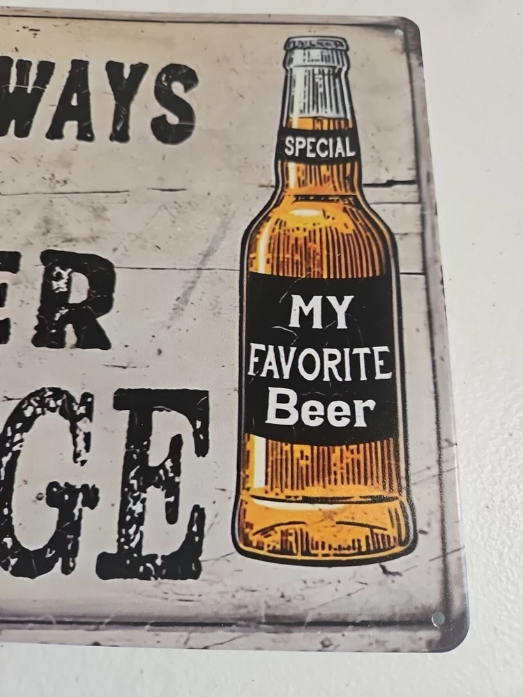 Brand: Unbranded Theme: garage Shape: Rectangle Item Width: 12 inches Mounting: Hanging, Wall Mounted, Door Mounted Additional Parts Required: No Orientation: Horizontal Room: Garage Subject: Beer Style: Rustic/Primitive Finish: Metallic Features: Decorative, Hanging, Rusted Look Color: Multicolor Material: Metal Item Height: 8 in Type: Sign