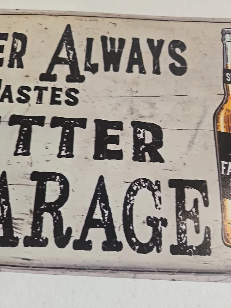 Beer Always Tastes Better In The Garage, Rustic Looking, 8x12, Metal Sign