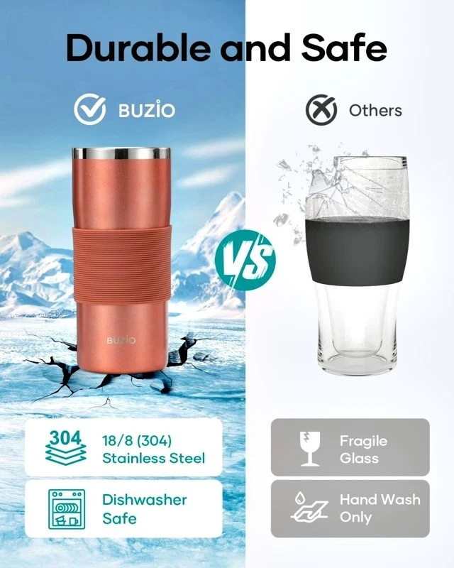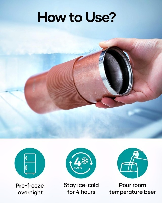 🧊 Instantly chill to 40°F: The beer mug features our 4th Gen FrostArmor Technology for outstanding, long-lasting coolness. Simply pre-freeze it overnight to instantly chill your drinks to around 40°F, keeping them ice-cold for 2 hours. 🧊 Hard & Anti-Cracking: Unlike other fragile frozen glasses, cooling cup made with 304 stainless steel with vacuum insulation and an aerospace-grade PCM layer, this ice cup is built to last and will not be broken by falling. 🧊Not Just For Beer: The ice cup has a wide range of uses, not just limited to cooling beer, you can freeze all the drinks you want. (tea, coffee, soda, milk, etc.) Let you enjoy a variety of beverages to bring you a cool feeling. 🧊 Dishwasher-Safe & Hands-Freezeproof: This freezer cup is also different from other glass freezer cups that can only be washed by hand, and it is Dishwasher-Safe. The detachable silicone grip ensures a anti-slip and anti-frostbite hold. 🧊 Best Gift for Celebration: The freezer tumblers is perfect chioce for chilling drinks. It's a ideal present for party, birthdays, Christmas, or as a corporate present for any cold drink lover. NOTE: Provide perfect customer service.