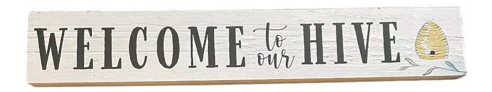 Crafted for those who appreciate the warmth of farmhouse style, this "Welcome To Our Hive" wall sign brings a touch of nature indoors. The large, rectangular wooden sign measures 24 inches in length and 4 inches in height, with a comfortable thickness of 1.5 inches. It's designed to be a versatile piece, suitable for any room, and can be easily mounted on walls or doors, complementing your living space with its decorative appeal. Featuring a charming nature print pattern and a matte finish, the sign is produced by Enchante Accessories, ensuring a quality piece that enhances your home. The multicolor design adds a vibrant, yet cozy feel, perfect for both indoor and outdoor settings. Simple to maintain, just wipe with a damp cloth, this piece is a hassle-free addition to your Floral & Garden themed decor.