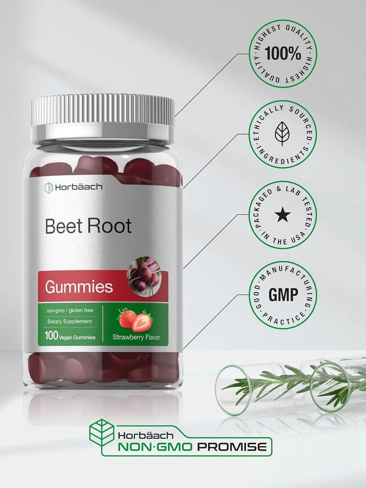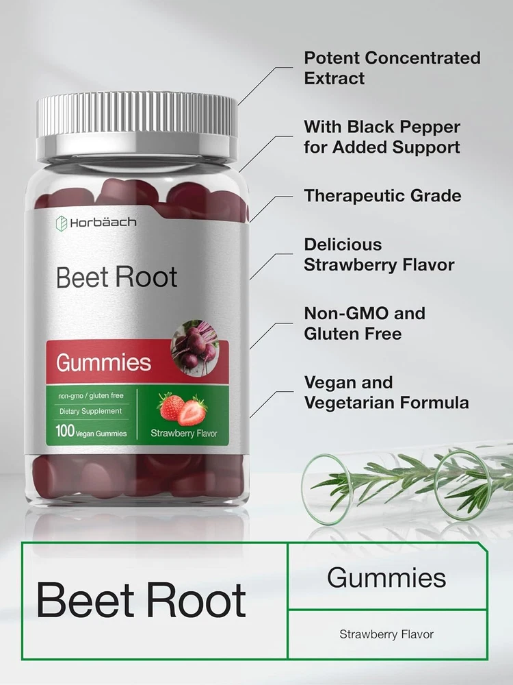 Nature’s Red Superfood: Beet root (Beta vulgaris) is an iconic red superfood that grows abundantly throughout North America and Europe. This powerful superfood is well known for its earthy flavor and strong nutritional content. It is a natural source of vitamins and minerals, nitrates, and pigment compound, "betaine." Supplementing with Beet Root: Beet root is featured in many supplements including bulk powder, capsules, pills, liquid tinctures, chews, tea, and tablets. Now there is a whole new way to enjoy the goodness of this superfood with the delicious taste of a gummy. Horbaach Beet Root Gummies: Boost your daily routine with Horbaach’s Beet Root Gummy! These bite sized vegan gummy chews provides the equivalent 6,000 mg of Beet Root per serving, plus Black Pepper and Vitamin C for ultimate nutritional support. They’re bursting with strawberry flavor and made without artificial sweetener, so nothing will stand in your way of feeling your best every day.