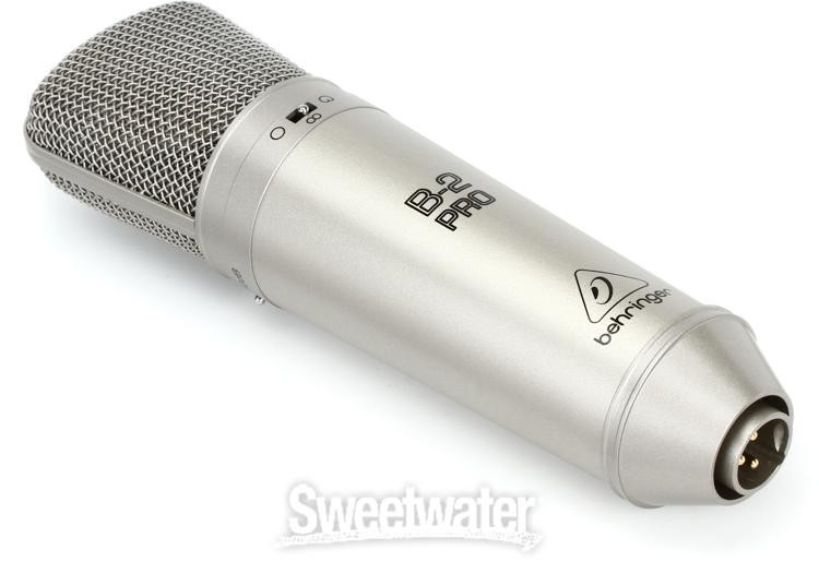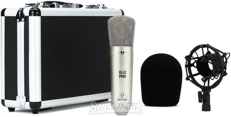 The Behringer B-2 Pro large diaphragm condenser mic gives you a lot of microphone for a little money. You get three selectable polar patterns, a 10dB pad, and the crisp sound of a studio condenser mic at a price that's great for home and project studios. Behringer even gives you a shockmount, windscreen, and aluminum storage case with the B-2 Pro. If you're just starting to record or just need an alternative studio mic at a low cost, you'll appreciate the Behringer B-2 Pro. Behringer B-2 Pro Tube Condenser Mic at a Glance: Selectable polar patterns Switchable attenuation Accessories included Selectable polar patterns The B-2 Pro lets you pick from cardioid, omni, and figure-8 polar patterns for a variety of recording applications. Multiple patterns make this an ideal mic for small studios that need each mic to cover as many applications as possible. You normally don't get this level of Sweetwater is an Authorized Behringer Dealer Genuine New Item Sweetwater's 2-year warranty Behringer B-2 Pro Dual-diaphragm Condenser Microphone Large-diaphragm Condenser Microphone with 3 Switchable Polar Patterns and 10dB Pad The Behringer B-2 Pro large diaphragm condenser mic gives you a lot of microphone for a little money. You get three selectable polar patterns, a 10dB pad, and the crisp sound of a studio condenser mic at a price that's great for home and project studios. Behringer even gives you a shockmount, windscreen, and aluminum storage case with the B-2 Pro. If you're just starting to record or just need an alternative studio mic at a low cost, you'll appreciate the Behringer B-2 Pro. Behringer B-2 Pro Tube Condenser Mic at a Glance: Selectable polar patterns Switchable attenuation Accessories included Selectable polar patterns The B-2 Pro lets you pick from cardioid, omni, and figure-8 polar patterns for a variety of recording applications. Multiple patterns make this an ideal mic for small studios that need each mic to cover as many applications as possible. You normally don't get this level of flexibility in a mic at this price. Switchable attenuation For even more versatility, the B-2 Pro has a switchable 10dB pad to accommodate louder sources. This lets you use the B-2 Pro on just about anything, from horns to drums to guitar amps. Accessories included You don't just get the mic. The B-2 Pro comes with everything you'd need to get the most out of your recording. You get a custom shockmount to help isolate the mic, a windscreen to help control plosives, and an aluminum storage case. Behringer B-2 Pro Tube Condenser Mic Features: Versatile microphone at a low price is ideal for home and project studios Multiple polar patterns give you more control over the mic's performance Switchable 10dB pad allows you to record louder sound sources Shockmount and windscreen are included Aluminum storage case for easy transport and safe storage Requires +48V phantom power The Behringer B-2 Pro is an all-around studio mic. Specification Detail Microphone Type Condenser Polar Pattern Cardioid, Omni, Figure-8 Diaphragm Size 1" (25.4mm) Frequency Response 20Hz-20kHz Max SPL 138dB Output Impedance 100 ohms Signal to Noise Ratio 77dB (A weighted) Self Noise 17dB (A weighted) Low Cut Filter 150Hz (-6dB/octave) Pads -10dB Connector XLR Color Silver Power Source 48V phantom power Weight 1.2 lbs. Included Accessories Shockmount, Windscreen, Aluminum Carry Case RETURN INFORMATION We want you to be completely happy with your purchase from Sweetwater. If you are not satisfied with your product, you may return it for a refund of the purchase price within 30 days. If your purchase was eligible for Free Shipping, the shipping cost will be deducted from your credit or refund. Returns must be in the complete and original packaging with all accessories and complete documentation (Owner's Manual, warranty card, quick start guides, etc.), show no signs of wear or use, and include a Return Authorization number or be subject to a restocking fee.