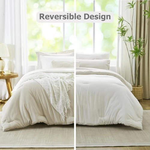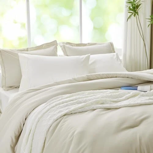 Beige Comforter Set Reversible Bedding Set, 7 Pieces Queen 2 Beige-reversible