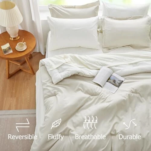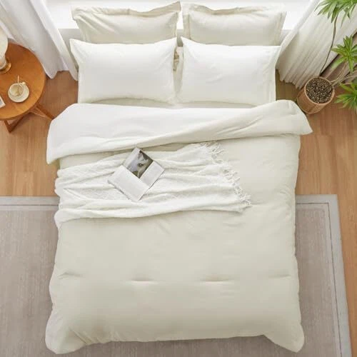 Package Dimensions: 16.18 x 12.4 x 7.72 inches Size: Queen MPN: Does Not Apply Seasons: All, Winter, Summer, Spring Manufacturer: Does Not Apply Customer Reviews: 4.5 out of 5 stars Item Weight: 8.03 pounds Pattern: Solid Item Length: 16.18 Product Care Instructions: Machine Wash, Do Not Bleach Item Height: 7.72 Style: Modern Item model number: Reversible Bed-in-a-bag 7 Pieces Included Components: 1 Comforter (88" x 88"), 2 Pillowcases (20" x 30"), 2 Pillow Sham Date First Available: May 9, 2024 Brand: Does Not Apply Color: 2 Beige-reversible Item Width: 12.4 Number of Pieces: 7 gtin13: Does Not Apply Fabric Type: 100% Polyester Theme: Modern Country of Origin: China Material: Polyester Type: Does Not Apply UPC: Does Not Apply EAN: Does Not Apply