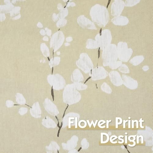 Beige Kitchen Tier Curtains 24 Inch Length Windows White Blossom Print Light