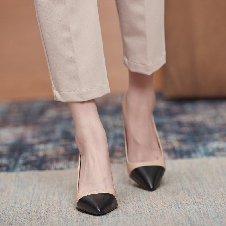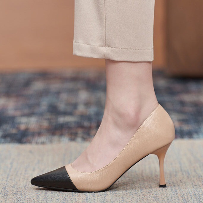 1. These pumps are a dream! The 70mm heel is just right—comfortable yet stylish for all-day wear. The beige and black combo pairs effortlessly with everything from office wear to evening outfits. The pointed toe adds a sleek, polished touch, and the fit is true to size. Love how they instantly elevate any look while feeling secure and chic. A wardrobe staple!