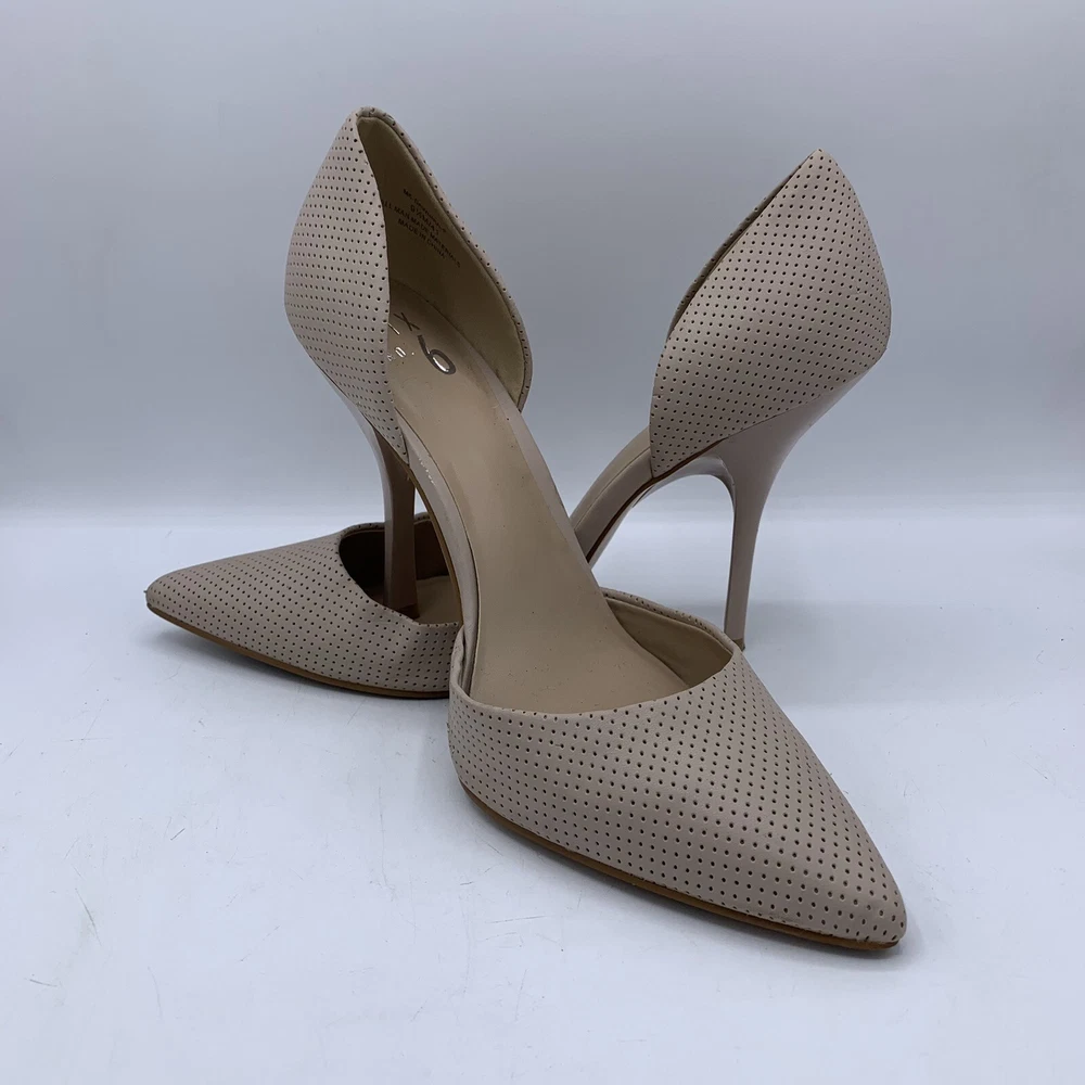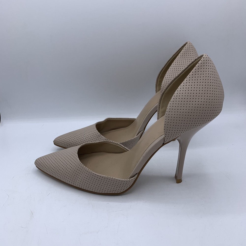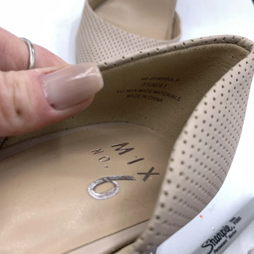 Elevate your fashion game with these stunning Mix No. 6 beige nude high heels. These stilettos have a pointed toe and a sleek patent leather upper that exudes elegance. The comfortable heel height of 3-3.9 inches and under 1-inch platform height make them perfect for any formal occasion, be it a wedding or a cocktail party. The Mix No. 6 heels come in size 9.5 for US and UK, and size 9.5 for AU. The outsole material is made of faux leather, while the insole and lining materials are synthetic. These pumps are a great addition to any classy wardrobe, and the pointed toe stiletto style will make you stand out in a crowd.