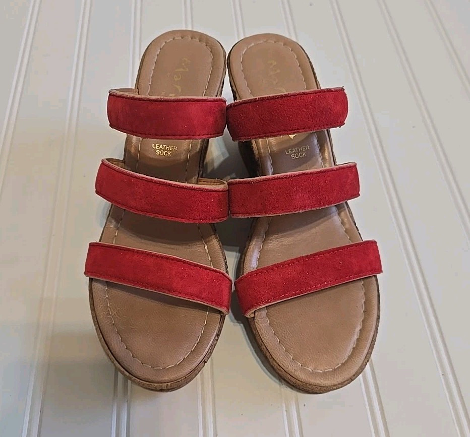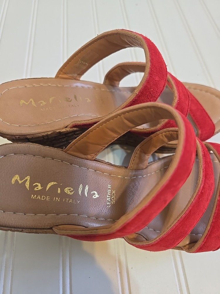 Style: Slide Product Line: X US Shoe Size: 8 Vintage: No Closure: Slip On UK Shoe Size: 6 Pattern: Solid Type: Sandal Model: Mariella Character: outdoor Heel Height: High (3-3.9 in) Customized: No AU Shoe Size: 8 EU Shoe Size: 39 Color: Red Features: Straps Accents: Strap Brand: Mariella Upper Material: Leather Department: Women Heel Style: Wedge