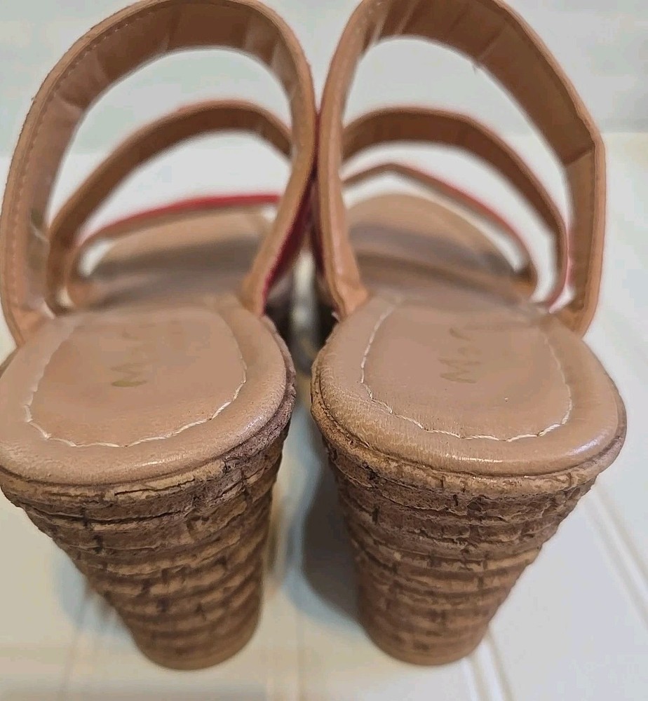 Beige Slide Wedge Sandals with Red Straps Womens Size 8M Preowned