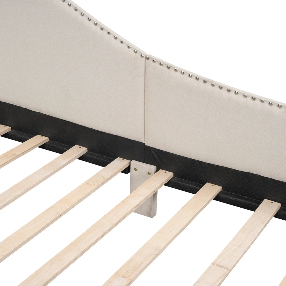 Beige Twin Upholstered Daybed with Headboard, Armrests, and Support Legs