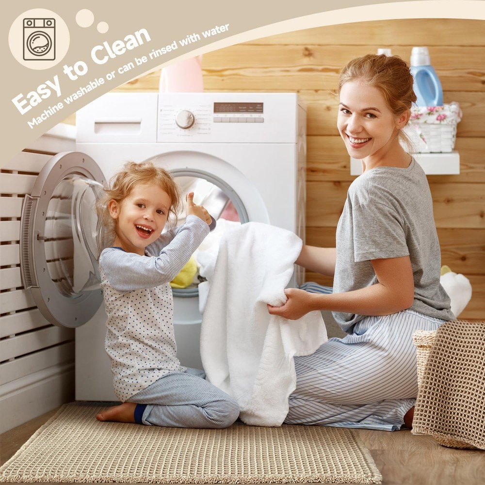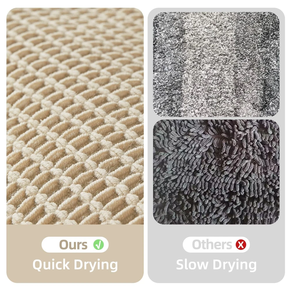 Transform your space with our premium waffle bath mat, designed to bring both style and practicality to your home. Woven from high-quality yarn into a unique waffle pattern, these boho bathroom rugs combine an aesthetic appeal with top-notch functionality. The innovative weave design ensures exceptional moisture absorption and fast drying, keeping your floors fresh, dry. Safety is always a priority with our non-slip backing. Featuring durable hot melt adhesive, these mats stay securely in place on smooth surfaces, reducing the risk of slips and falls. Perfect for households with kids or seniors, these rugs offer peace of mind with every step. Maintaining your waffle bath mat is easy and hassle-free. These washable rugs are perfect for daily use, and while hand washing or rinsing under running water is recommended to preserve the non-slip backing, occasional machine washing on a gentle cycle works too. Just remember to avoid tumble drying or bleach to keep your mat in pristine condition. But these rugs aren’t just for bathrooms—they’re the ultimate multitaskers! Whether you're styling a neutral bohemian-inspired space, a cozy farmhouse nook, or a sleek modern room, these rugs fit right in. Use them in the kitchen, laundry room, hallway, entryway, or even in your RV. Available in a variety of sizes, from small mats to long runners, they’re perfect in front of sinks, showers, bathtubs, and more. Their chic jute-like texture and earthy aesthetic make them a versatile and stylish choice for any decor. Upgrade your home essentials with our waffle bath mat and enjoy the perfect blend of boho charm, modern practicality, and timeless design. From their super absorbent functionality to their non-slip backing, these bathroom rugs deliver comfort, style, and convenience for every corner of your home. Comfort and Style: Our bathroom rugs are like a warm hug for your feet, crafted with a chic waffle texture and a geometric design. Stepping out of the shower feels like landing on a cloud, transforming your bathroom into a cozy, spa-like retreat Super Absorbent and Quick Dry: These waffle bath mats are moisture magnets! Their unique weave quickly absorbs water, keeping your bathroom dry and comfy Upgrade Non-Slip Backing: Safety comes first with our upgraded mats. The transparent hot melt adhesive backing sticks to smooth surfaces like glue, keeping the bath rug firmly in place. No more worrying about slips or curls—just safe, steady steps Easy to Clean: Caring for these boho bathroom rugs is a breeze. Hand wash or rinse them under running water for best results. While occasional machine washing is okay, avoid tumble drying and bleach to keep your mat in perfect shape. Treat it with care, and it’ll last for the long haul Versatile and Stylish: Available in a variety of sizes and stylish colors, these waffle bathroom rugs are the ultimate multitaskers. Perfect for your sink, shower, or bathtub, they also work in the kitchen, laundry room, RV, hallway, entryway, or even on stairs. Wherever comfort and style are needed, this waffle knit bath mat gets the job done
