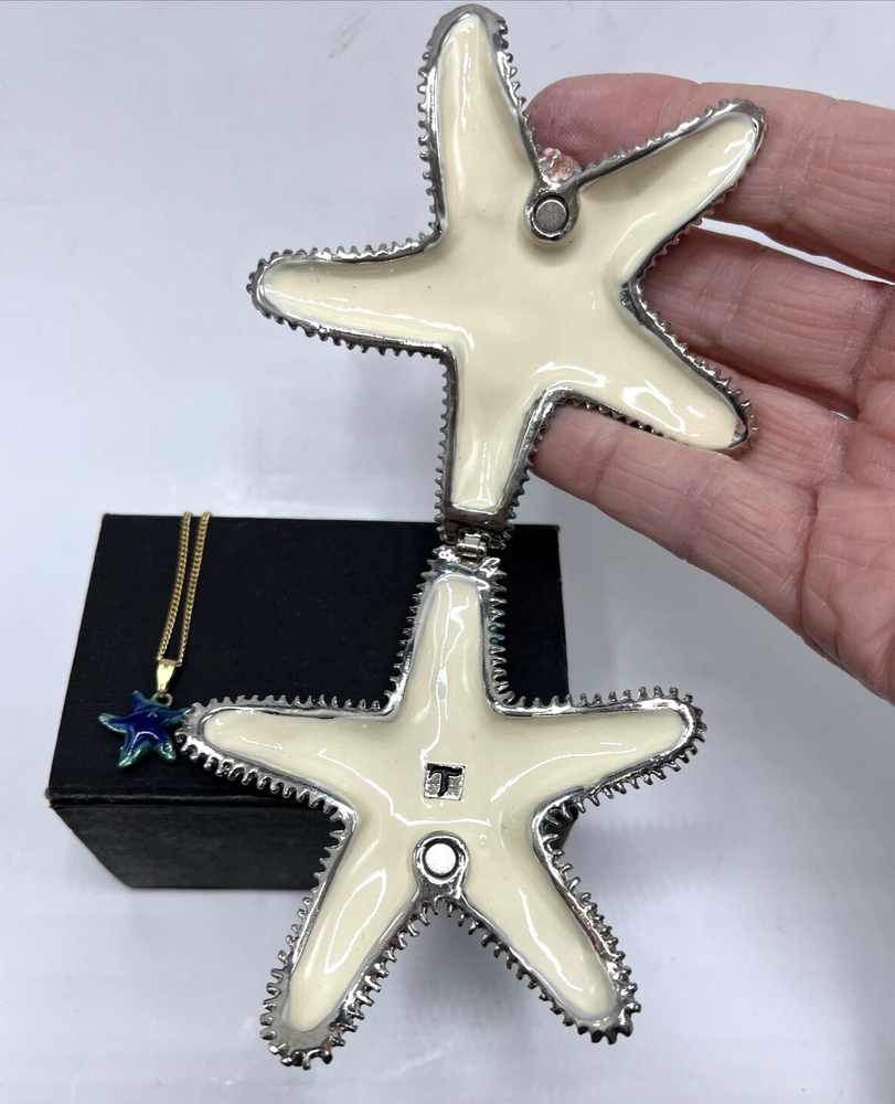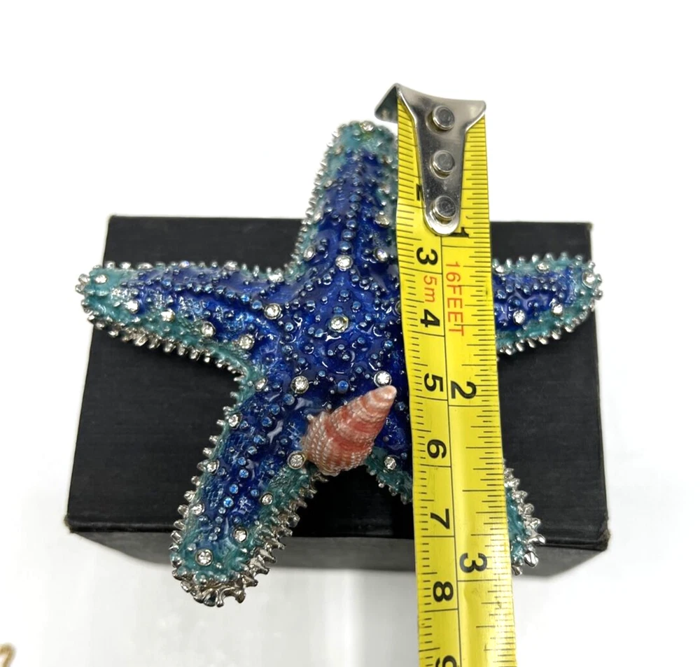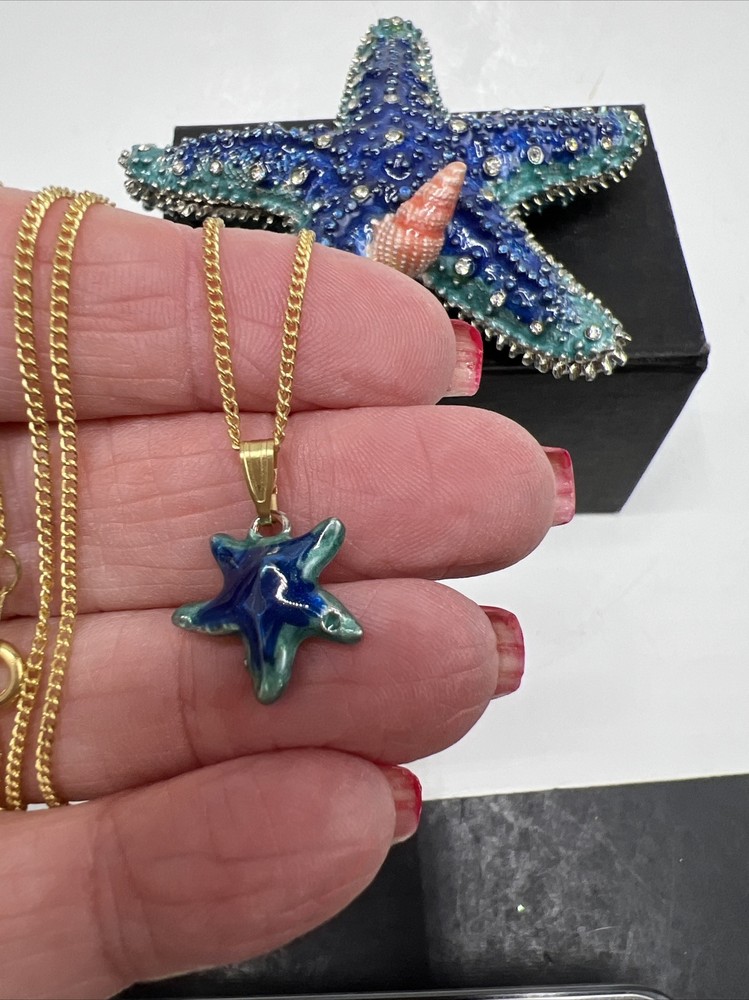 1. Such a gorgeous little treasure! The teal blue starfish trinket box is so charming with its sparkling details and matching necklace—perfect for holding tiny keepsakes. It’s well-made, elegant, and feels special knowing it comes from a cherished collection. Packed carefully and shipped fast—love it!