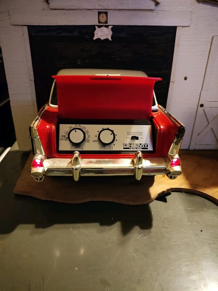 This retro Bel Air radio is such a cool find! It runs on C batteries and actually works—the tail lights even light up when turned on, and the antenna at the back adds to the vintage charm. The sound quality is surprisingly good for its size, making it a fun and functional piece for any car enthusiast or collector. Love the nostalgic vibe!