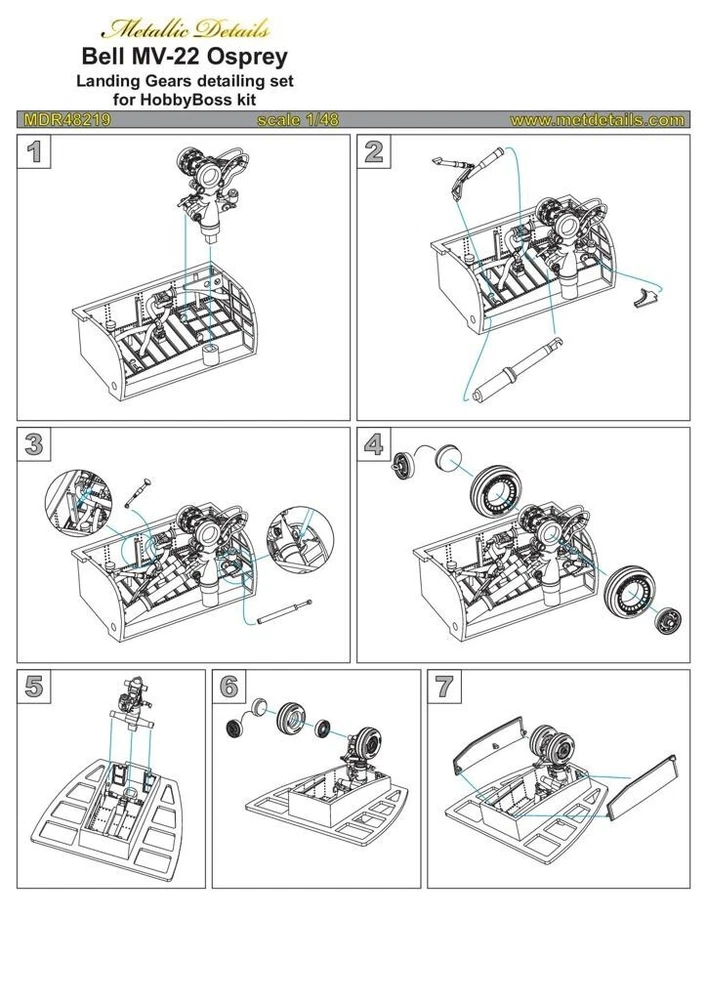 Bell MV-22 Osprey. Landing Gears, Wheel Bays, Wheels (Resin, 3D-Printed) Scale 1:48 (Recommended for kit: HobbyBoss) Metallic Details MDR48219 - For Model Kits Aircraft Set contains resin and 3D-printed parts for Detailing of Landing Gears , Wheel Bays , Wheels of Model Kit Aircraft 1:48 Bell MV-22 Osprey (HobbyBoss). Type aircraft or vehicle: Bell Boeing MV-22 Osprey Attention! The Aircraft is not included in the set. Only the Upgrade Set! Scale: 1:48 Manufacturer: Metallic Details (Ukraine) Model (SKU): MDR48219 Country/Region of Manufacture: Ukraine Condition: New in Box Product specifications Material: Resin parts / 3D-Printed Type: for Aircraft Model Kits Features: Kit Kit description: Unpainted, Unassembled, Kit do not contain paints and glue Equipment Type: Landing Gears, Wheel Bays, Wheels Recommended kit: HobbyBoss The Bell V-22 Osprey β a multi-mission, tiltrotor military aircraft with both vertical takeoff and Landing and short takeoff and Landing capabilities. Produced: 1988 β present. Operators: Japan, United States. ------------------------------ Discover Scale Modeling Like Never Before! π Visit Our eBay Store! π Explore Our Collection Now! Step into the extraordinary world of scale modeling with our premium selection of scale model accessories , crafting supplies, and tools. Whether you're a seasoned modeler or just starting, we offer everything you need to create lifelike replicas of automobiles, aircraft, ships, and trains. Elevate your projects with: π¨ Miniature Components for added realism. π οΈ Precision Tools to craft every detail flawlessly. π‘ Supplies designed to unleash your creativity. Let your imagination soar with the best in scale model craftsmanship! π About Us ποΈ We provide a wide selection of 100% brand-new products at competitive prices βdirect from manufacturers to you. π¬ Need help? We're always here to assist you! βοΈ Enjoy a simple, secure, and worry-free shopping experience. π³ Payment π΅ All eBay payment methods accepted, giving you convenience and flexibility. π‘οΈ Transactions are protected by eBayβs Buyer Protection Program for your peace of mind. π Shipping Details βοΈ Fast & Reliable Shipping : Orders are shipped via trusted airmail services and delivered by your national postal service. π¦ Tracking Included : Monitor your package every step of the way. Shipping from Ukraine . Estimated delivery: 10β25 days . Handling time: 1β5 business days . π Shipping Discounts π° Save more with combined shipping discounts ! 50% off shipping for each additional item. π§ Request an invoice before payment for an updated total. π Hassle-Free Returns π Not satisfied? No worries! β Refunds issued promptly upon receipt of the item in its original condition. π― Shop with confidence and craft your perfect models today!