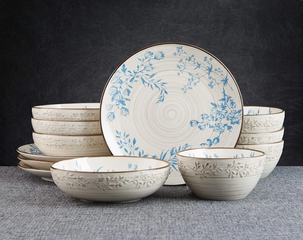 Store New Arrivals Add to Favorite View Feedback Contact Bella 12 Piece Dinnerware Set, Service for 4, Multicolor Description Item model number 5274249 Item Weight 19.4 Pounds Style Bella Color Multicolor Pattern Floral Is Microwaveable Yes Material Stoneware Occasion Casual Global Trade Identification Number 00025398218929 Product Care Instructions Dishwasher Safe Shape Round Is Dishwasher Safe Yes Collection Name Bella Finish Type Glossy Product Dimensions 14.5 x 13.5 x 14.5 inches Country of Origin China Number of Pieces 16 CLASSIC MEETS HANDCRAFTED: gray antiqued pieces with a striking swirl design are adorned with a blue floral pad print pattern and framed with metallic rims TABLE FOR FOUR: 12-piece set, service for 4, includes 4 each of: 10-1/2 inch dinner plate; 2-1/2 inch tall 32-ounce pasta bowl with an 8-inch diameter; and 3-inch tall 25-ounce all-purpose bowl with a 6-inch diameter STRONG & DURABLE: made from high-quality stoneware for long-lasting beauty and durability STUNNING FINISH: due to the nature and handcrafted qualities of reactive glaze, no two pieces are exactly alike and will exhibit unique variations in color and pattern, therefore product may slightly differ from image shown EASY CLEANING & REHEATING: dishwasher safe for fast, simple cleanup, and microwave safe for quick reheating Classic style meets handcrafted design with this Pfaltzgraff 12-Piece Bella Dinnerware Set. Durable, gray antiqued stoneware pieces with a striking swirl design are adorned with a blue floral pad print pattern and framed with metallic rims that make these place settings pop on your tabletop. The reactive glaze finish gives each piece a unique look and distinct coloring. 12-piece set, service for 4, includes 4 each of: 10-3/4 inch dinner plate; 8-3/4 inch salad plate; 26-inch wide x 3-inch tall 27-ounce soup/cereal bowl; and 3-1/2 inch wide x 4-1/2 inch tall 13-1/2 ounce mug. Microwave and dishwasher safe. ABOUT US We offer the best prices around on high quality products. Our E-store includes media such as books, movies, music and games while offering electronics, toys, sporting apparel, clothing, tools, general home, garden items and more. SHIPPING We are always working hard to ensure your package arrives as soon as possible. Please understand that some factors like weather, high postal traffic, and the performance of shipping companies are outside of our control. We offer free shipping to the lower 48 states and ship within 2 business days of payment, usually sooner. We do not accept P.O. Boxes. Please provide a physical address. For shipping outside of the continental USA, we only use eBay's Global Shipping Program.The item is shipped to KY and then sent to the rest of the world. International customers are responsible for all duties and taxes. Continue to check out in order to calculate costs for shipping the item to your country. Messages regarding eBay's Global Shipping Program MUST be directed at eBay EXCLUSIVELY. RETURNS We offer a 30-Day Return Policy on items which you are not completely satisfied with. You have the option for a full-refund or an exchange of the item. No returns are available on items shipped outside of the USA. PAYMENT We accept PayPal. CONTACT US This page content is yet to come Please ad us to your favorite seller and visit again later Thank You CUSTOMER SATISFACTION We try our very best to make sure every customer is completely satisfied. If there's a problem, message us! We're happy to help. WE ACCEPT Copyright © 2021 AutoDS. | All Rights Reserved