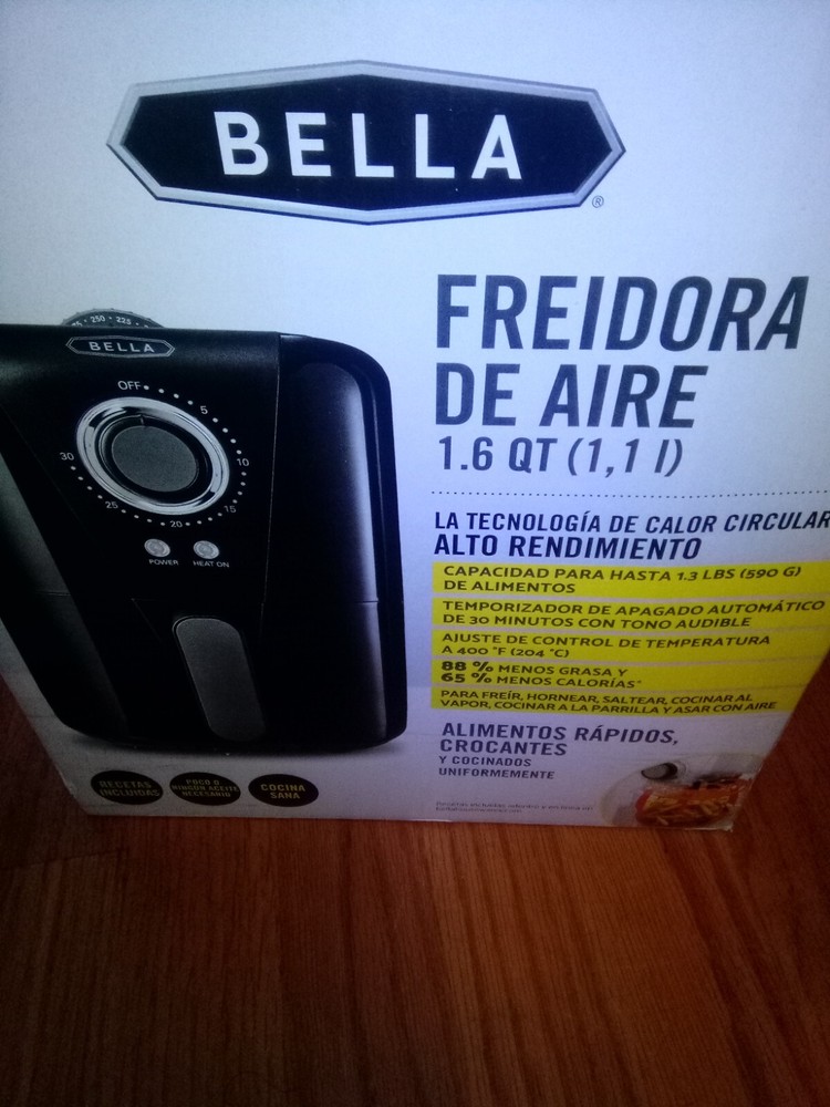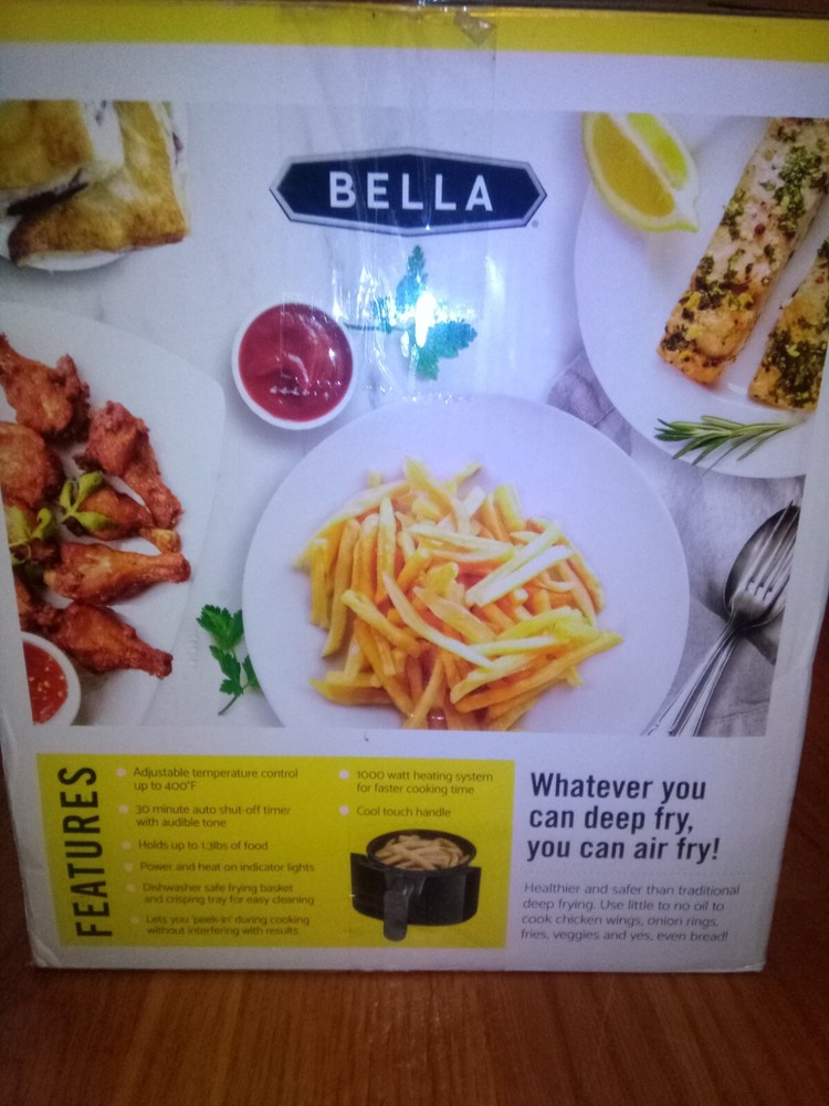 Introducing the Bella AF-89 Air Fryer, a versatile kitchen appliance perfect for cooking a variety of dishes. This electric air fryer has a 1.6 qt capacity and operates at a maximum temperature of 400°F. It features auto shut-off, timer, air circulation, and adjustable temperature settings for perfect cooking every time. The Bella AF-89 Air Fryer is designed with a black plastic material and comes with a basket for easy cooking. It has a voltage of 120V and a power of 1000W. This air fryer is made in China and weighs 6.89 pounds. Get ready to cook delicious meals with ease using this amazing kitchen tool!