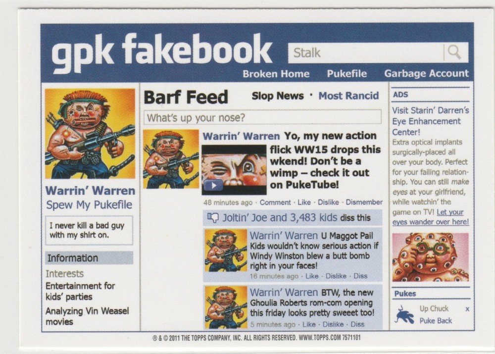 $ 3.17Garbage Pail Kids GPK 2011 Flashback Series 3 FB3 Chow Mame #63b Card
