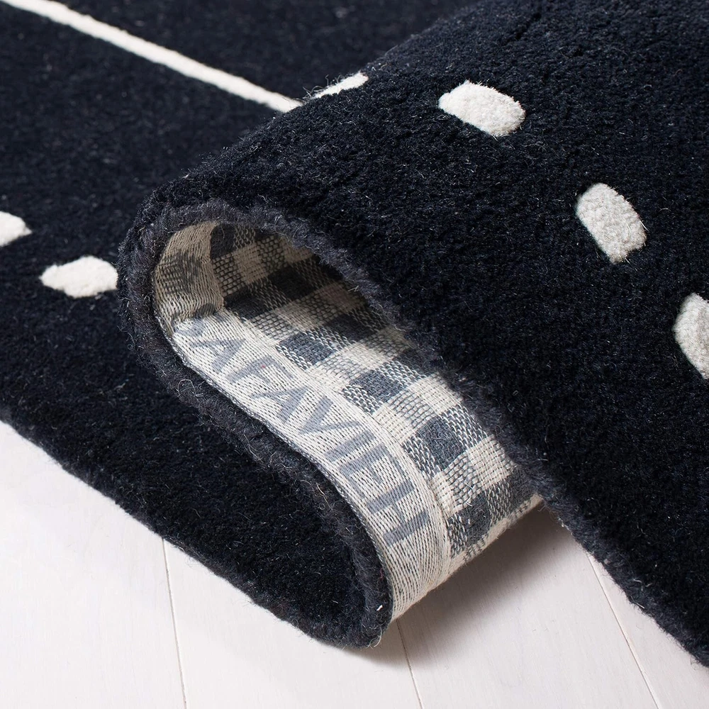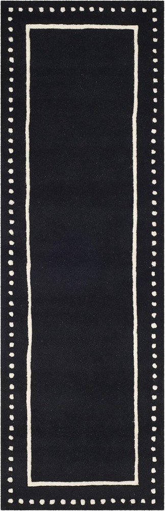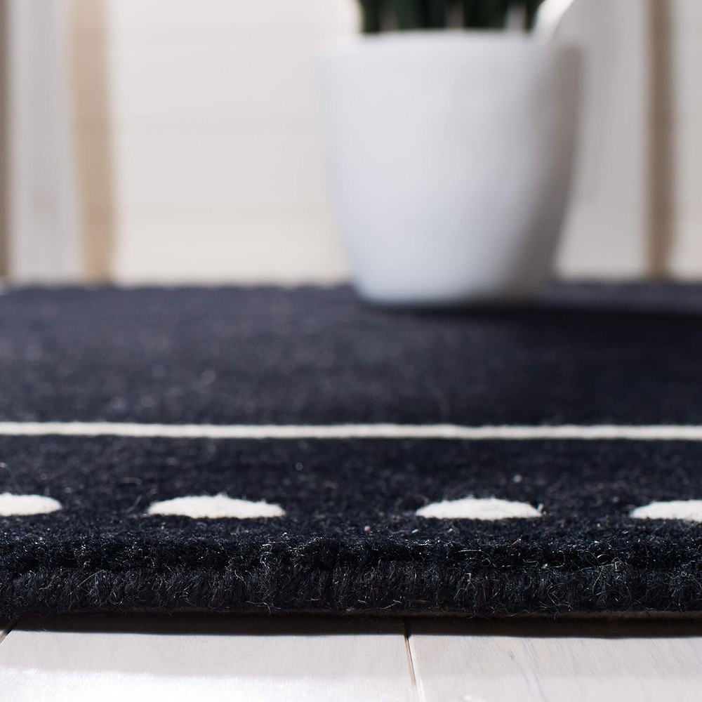 Bella Collection Runner Rug - 2'3" x 9', Black & Ivory, Handmade Dotted Border Wool, Ideal for High Traffic Areas in Living Room, Bedroom Contemporary design is a stylish addition to any room of the home Meticulously detailed artisan crafted hand-tufted Construction Made from plush premium natural wool Medium 0. 5-Inch pile Thickness for a sleek look and support underfoot Has been a trusted product and leader in home Furnishings for over 100 s, providing quality craftsmanship, unmatched style and the latest Trends Spanning design influences from ancient tribal patterns and Renaissance damasks to contemporary pop art motifs, The Bella Collection celebrates weaving traditions around the world. These rugs have been hand-tufted in China for enduring beauty.