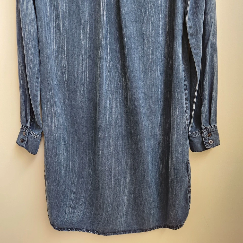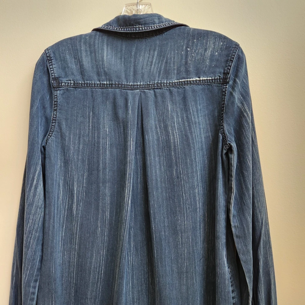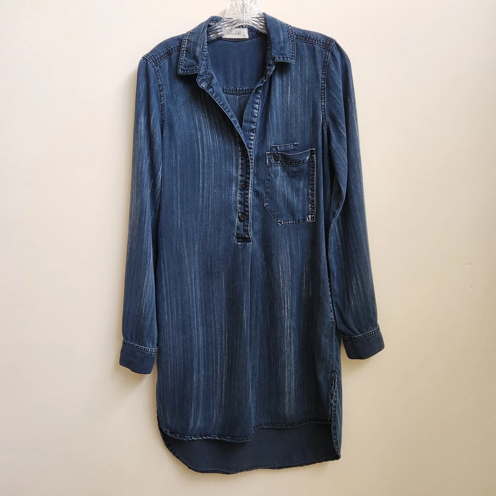 Bella Dahl Navy Acid Wash 1/2 Button Up Dress Size XSmall Pockets Side Slit - Pre-Owned - Has Irregular White Wash Spots on Back Shoulder, See Photo #9 & 10. Otherwise in Very Good Pre-Owned Condition - Measurement –Approximately Shoulder Armpit to Armpit - 13 1/2 in Chest Armpit to Armpit - 17 3/4 in Arms Length - 25 in Length - 38 in - 100% Tencel Lyocell - Spring, Summer, Fall, Night Out, Date Night, Lunch Date, Day Out, Shopping, Casual, Stylish, Chic, Trendy, Festive, and Simple - Returns acceptable within 30 days of purchase unworn, in original condition - Check out my E-bay Store. Lots of Choices Available. Reduced shipping for 2 or more items. Let me know before you pay so I can send you an invoice to discount the shipping