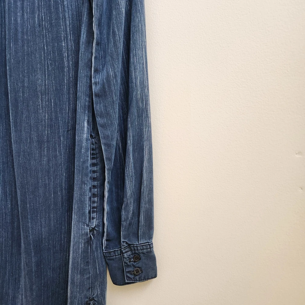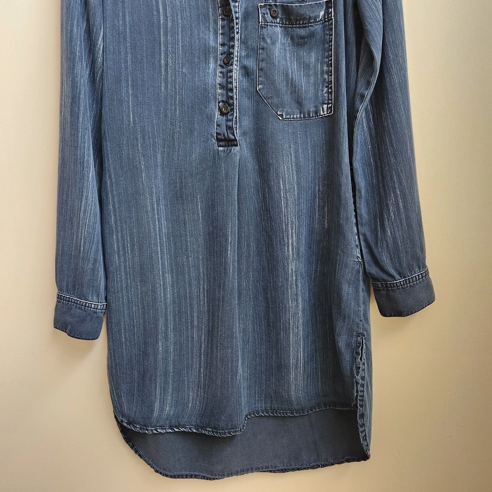 Bella Dahl Navy Acid Wash 1/2 Button Up Dress Size XSmall Pockets Side Slit