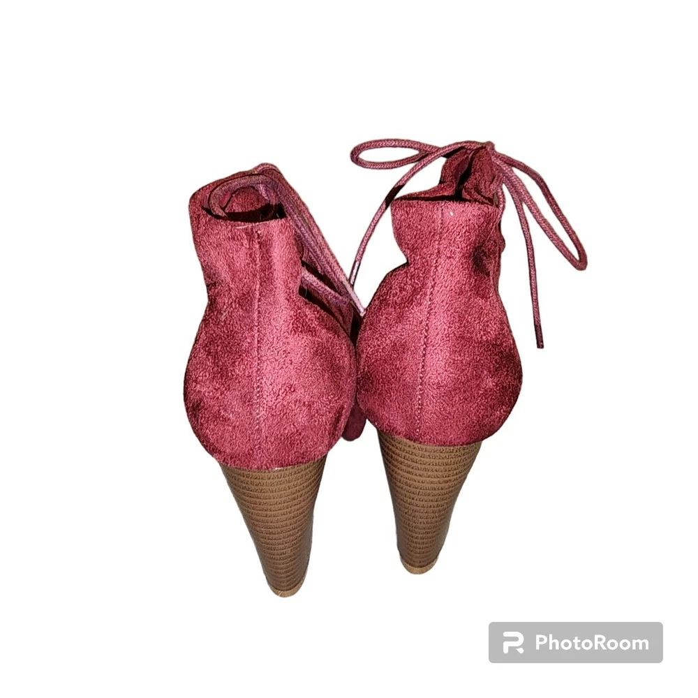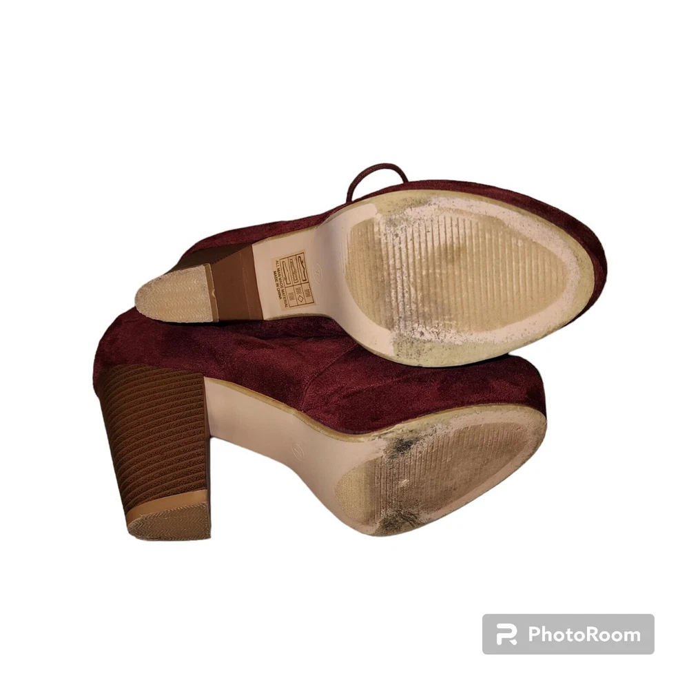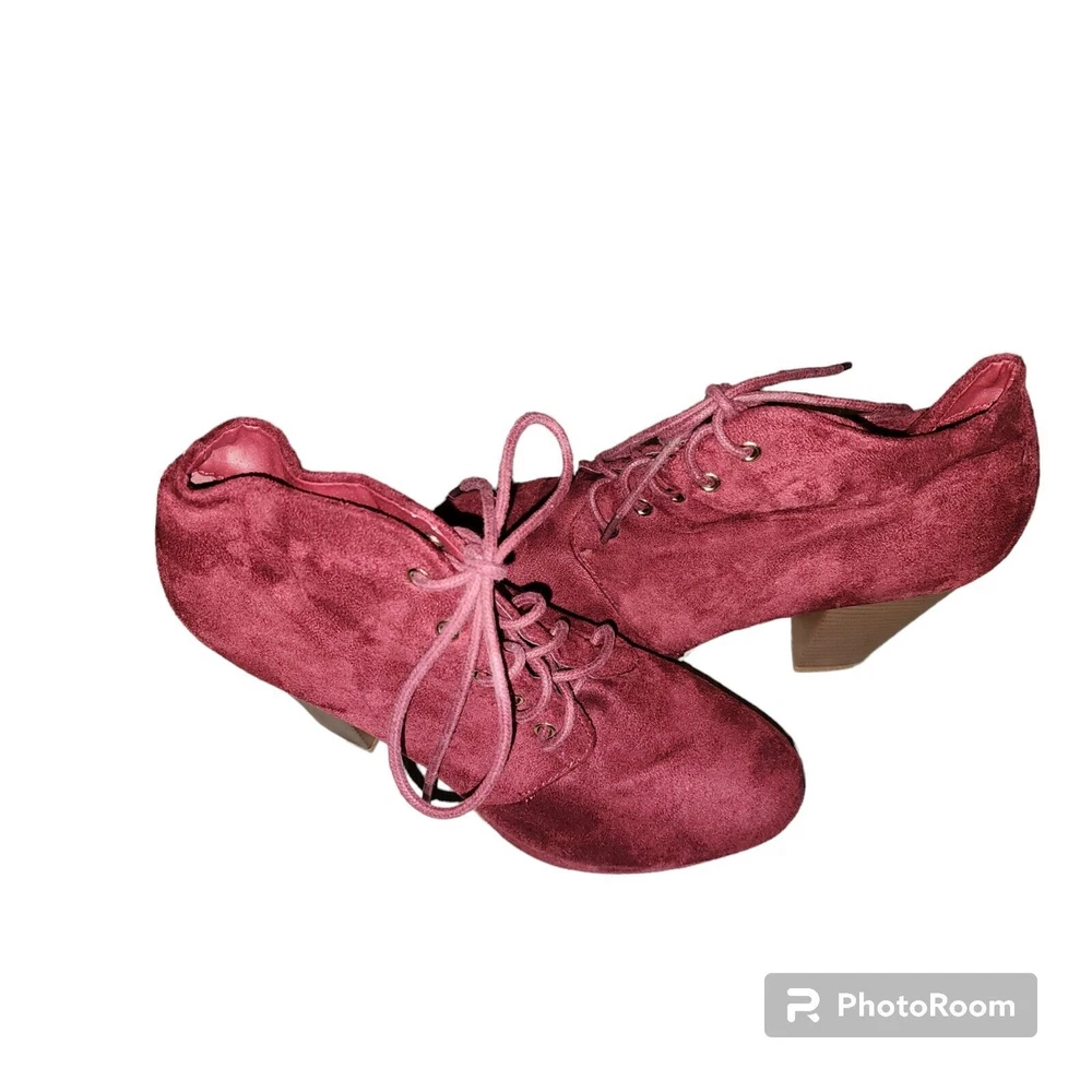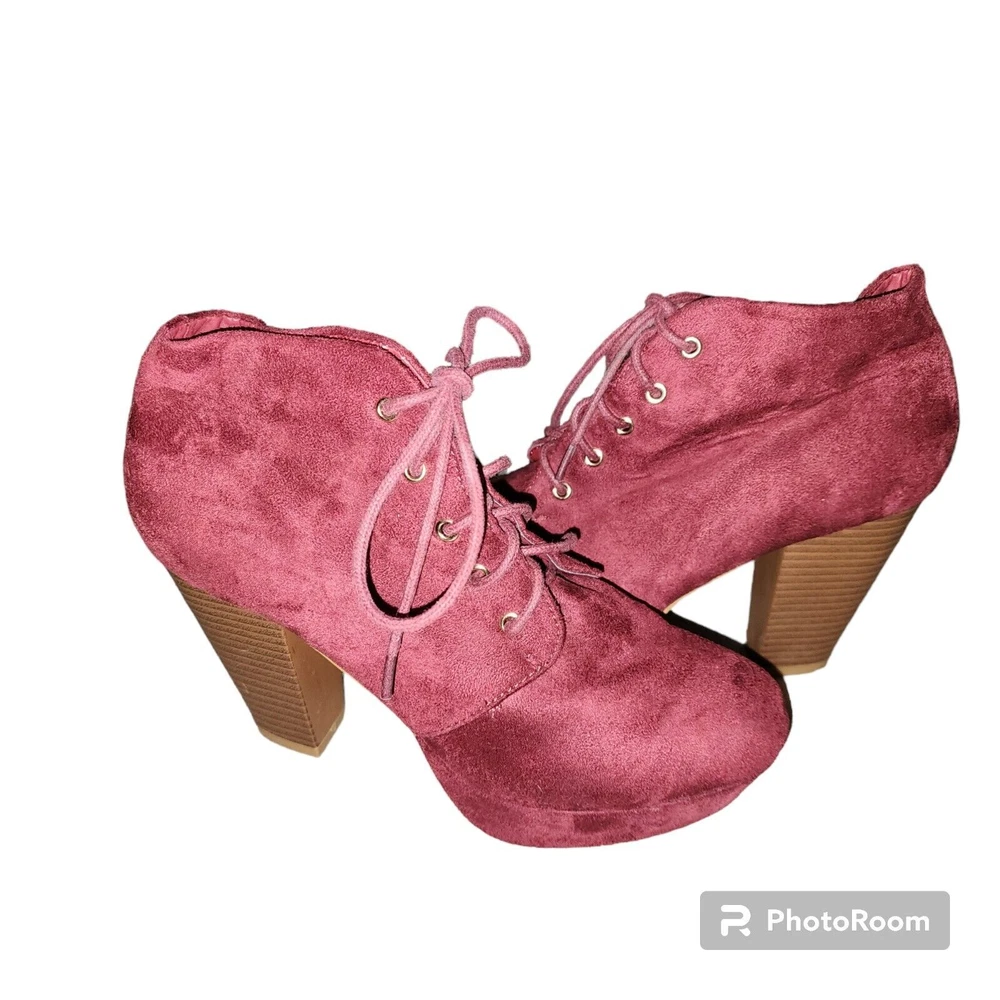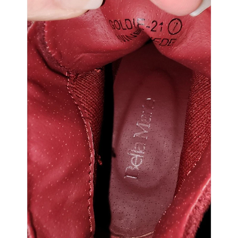 Style: Bootie Color: Wine Brand: Bella Marie Type: Boot Character: Marie Upper Material: Suede US Shoe Size: 7 Closure: Lace Up Heel Height: High (3-3.9 in) Department: Women Model: Bella Marie Goldie