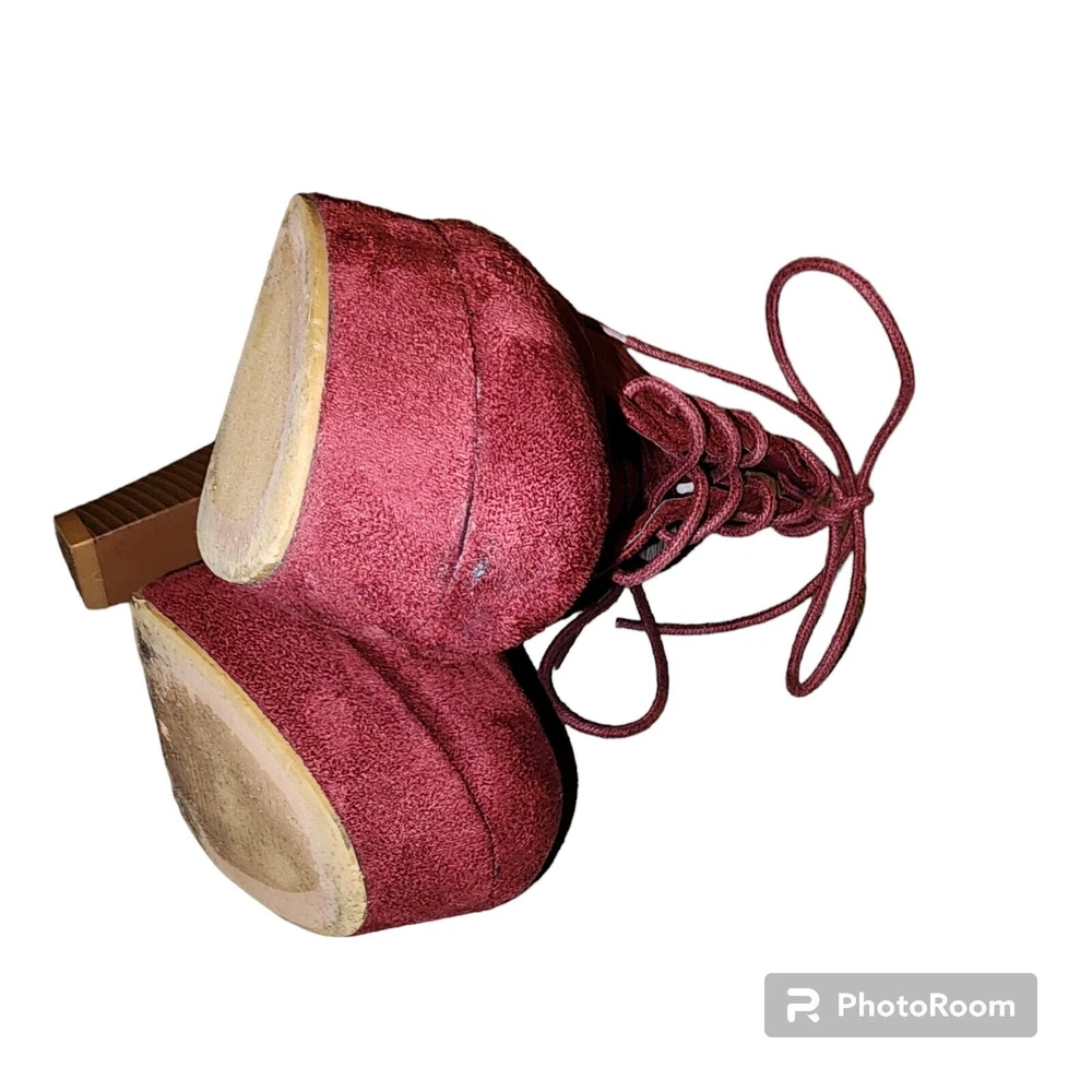 Bella Marie Sz 7 Goldie Wine Suede Lace Up Platform Booties Y2K Vibes