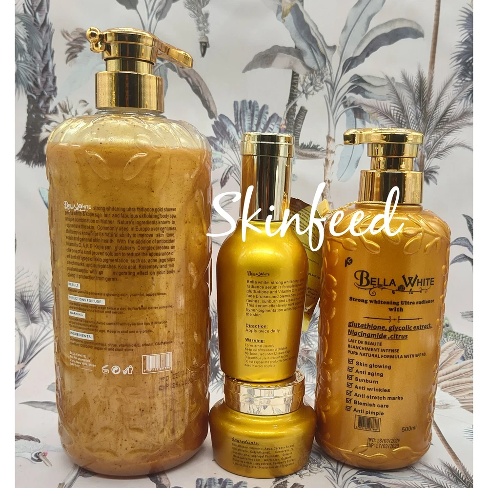 Bella-white Ultra Radiance Whitening Body Lotion, Serum, F.Cream & Shower Gel👌