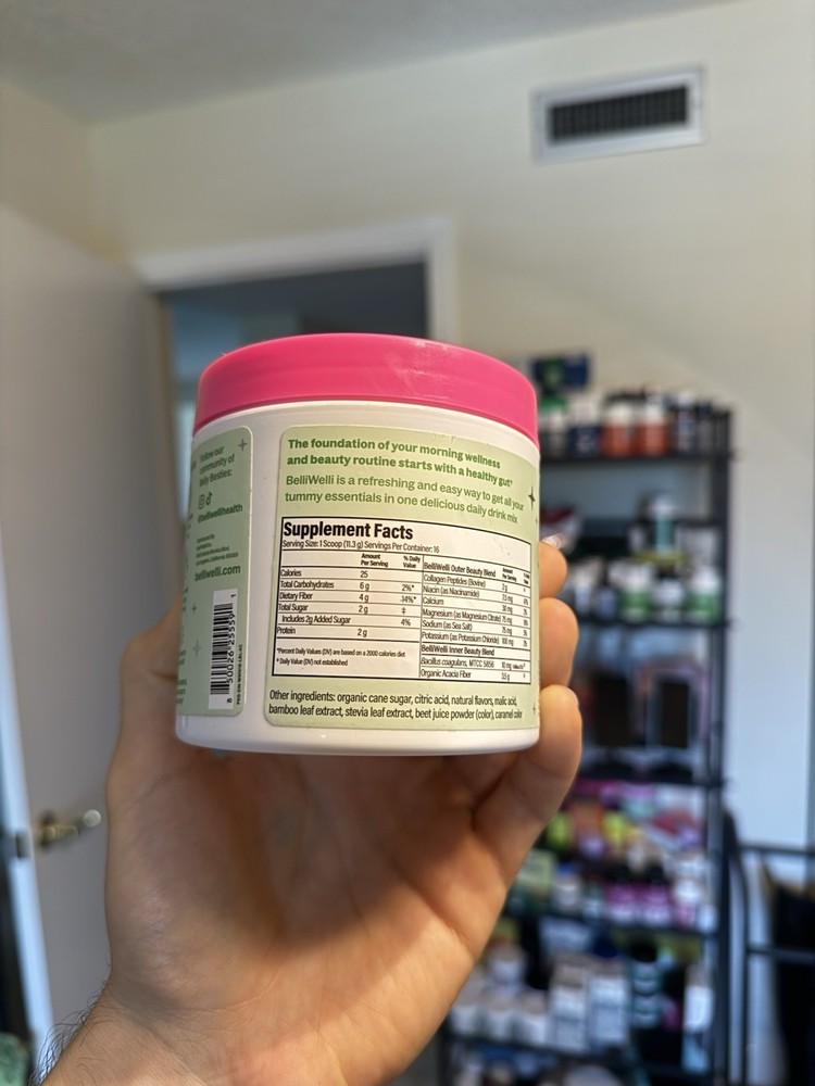 Type: Does not apply Model: Does not apply Color: Pink MPN: Does not apply EAN: 0850026255577 Flavor: Watermelon Country/Region of Manufacture: United States Size: 16 Servings (Pack of 1) Active Ingredients: Collagen Brand: Belli Welli gtin13: 0850026255577 ISBN: 0850026255577 no tax: home Weight: 0.51 Pounds Department: Adult Formulation: Powder Ingredients: Fiber Package Dimensions LxWxH: 4.37x3.74x3.66 Inches Expiration Date: 9/2026 When to Take: After Meal, After Workout, Before Workout Main Purpose: Digestive Support Features: Organic Volume: 6.4 fl oz