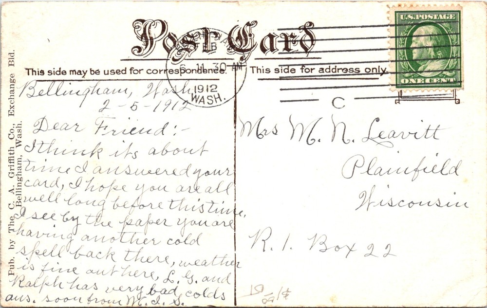 Continent:North AmericaSubject:WaterfrontCity:BellinghamNumber of Items in Set:1Unit of Sale:Single UnitType:Printed (Lithograph)Region:WashingtonCountry:United StatesCountry of Origin:United StatesOriginal/Licensed Reprint:OriginalVintage:YesTheme:Architecture, Cities & Towns, Community Life, Domestic & Family Life, Occupational, Transportation, TravelPostage Condition:PostedEra:Divided Back (1907-1915)Material:PaperModified Item:No