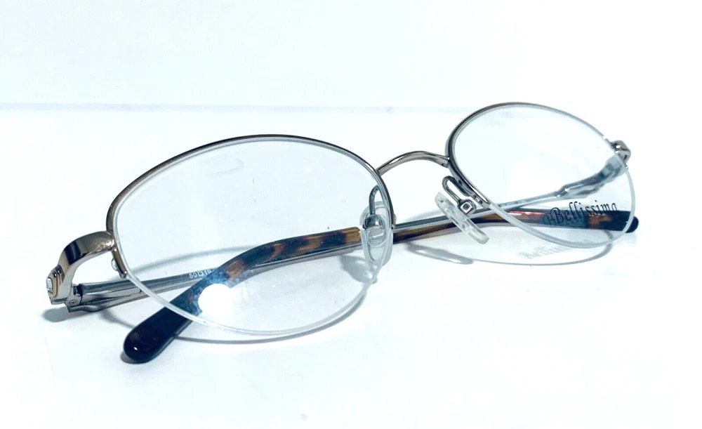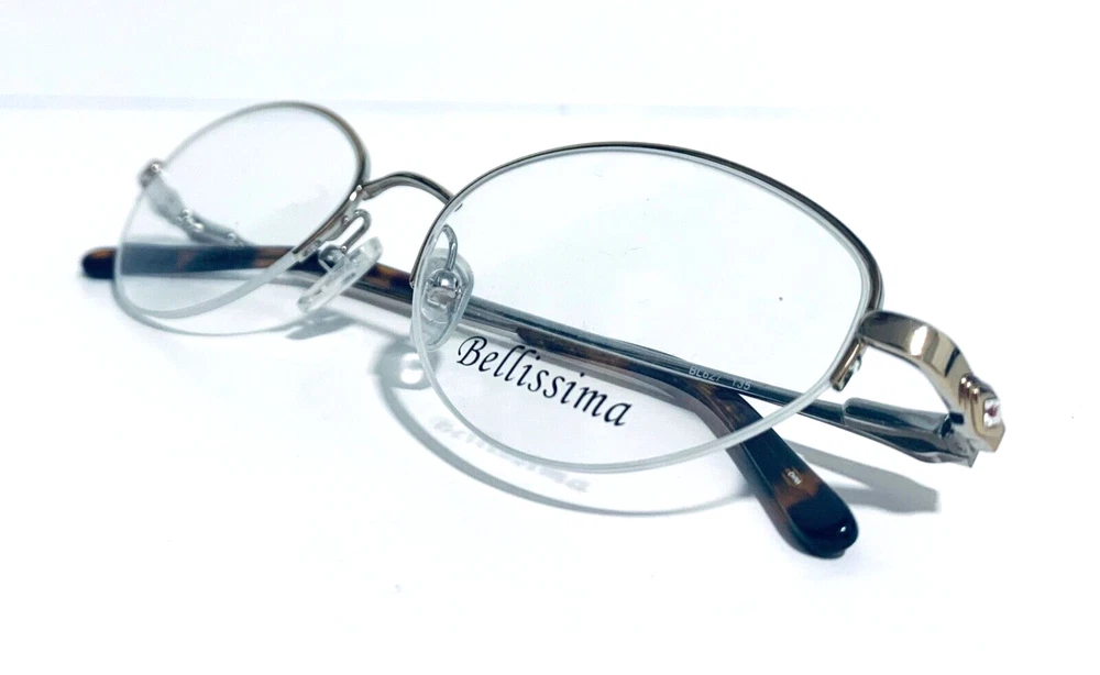 RACCOON STASH WELCOMES YOU! 100% Money Back Guarantee! New AUTHENTIC Bellissima BL 627 Light Gold / Silver Oval Half Rim RX EYEGLASSES Frame Model: Bellissima BL627 Light Gold / Silver Color: Gold / Silver Lens Color: Clear RX Demo Size: 50-19-135 MM The frame is brand new, never used or worn! It is a New Old Stock Frame, demo lenses may have some scratches from handling in store. COMES WITH GENERIC SLEEVE CASE and GENERIC CLEANING CLOTH! All items are packaged carefully for shipping to prevent any damage during transportation. International Buyers - Please Note: Import duties, taxes, and charges are not included in the item price or shipping cost. These charges are the buyer's responsibility. Please check with your country's customs office to determine what these additional costs will be prior to bidding or buying. If you have any questions please feel free to ask. Thank you for choosing us for your optical needs! Item ID: RV 009-149