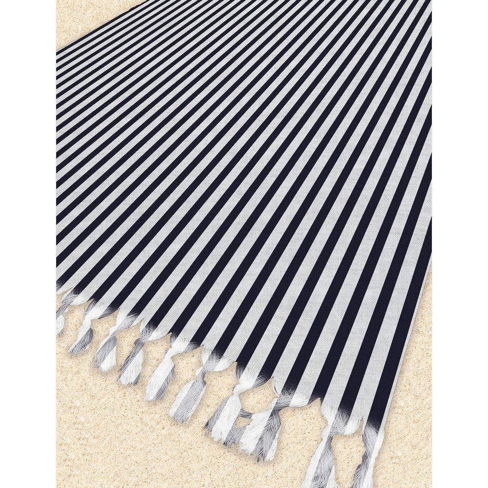 Belmont Stripe Navy Beach Blanket with Tassels 38x80 by Marina Blue