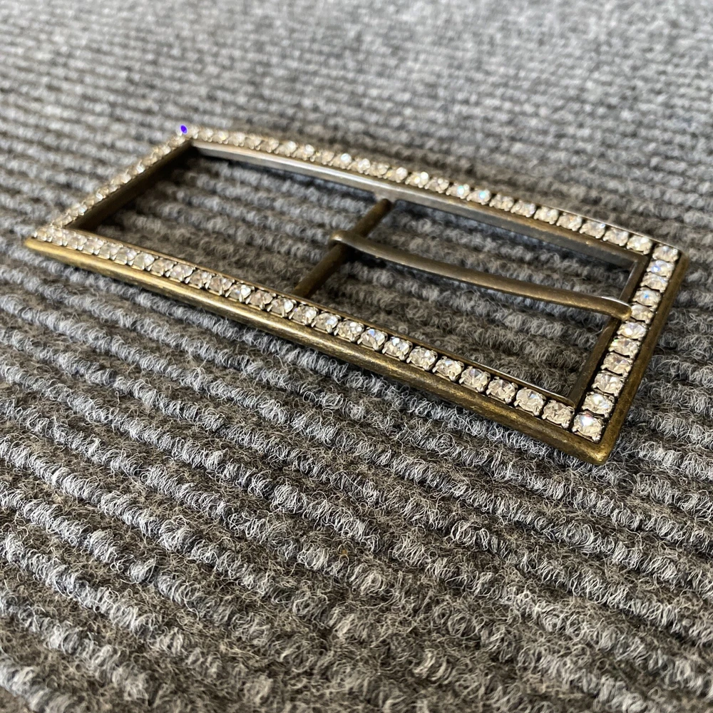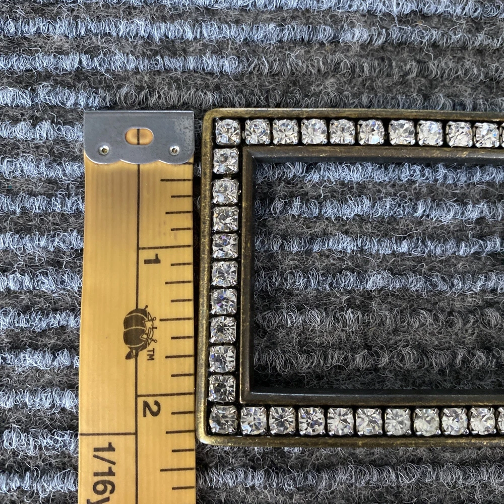 Belt Buckle Women’s Dark Gold Tone Long Rectangle Rhinestones