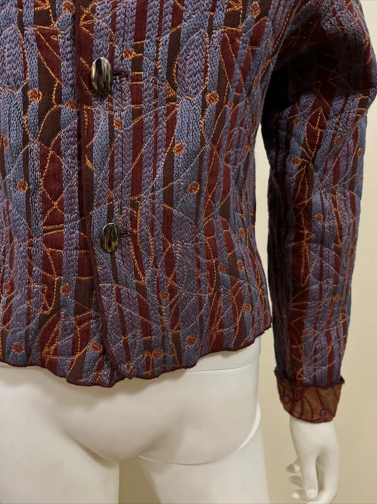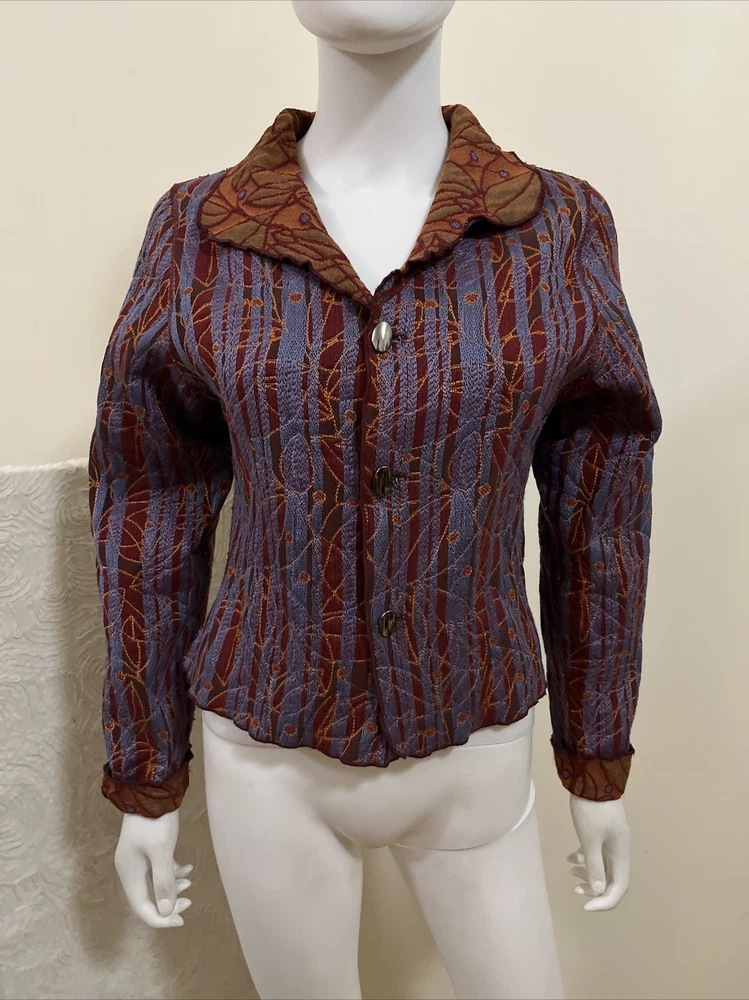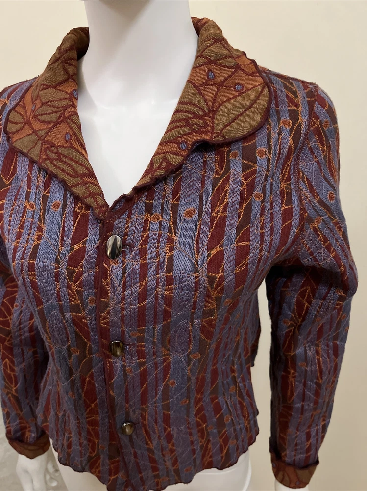 Item Details: Beluva San Francisco Jacket Front Buttons Textured Fabric Stitch Detail Cotton Lightweight Size: MEDIUM (to ensure fit, please refer to measurements) Shoulder: 14.5" Chest: 36" Sleeve/shoulder seam to sleeve edge: 23" Waist: 33" Hip: 36" Shoulder to Hem: 19.75" Condition: Excellent Condition; No Flaws to Note Condition Rating: 2 Condition Rankings: NWT = Brand New, tags still attached, never used. Mint Condition = Item may have been used, but shows no signs of wear. Excellent Condition: Used, but with minimal signs of wear. Very Good Condition: Used and shows moderate signs of wear, may need repairs, and is sold As Is. Fair Condition: Item is showing significant signs of wear, may need repairs, and is sold As Is. PLEASE NOTE: Most of our items are Pre-Owned or Vintage. Unless otherwise noted, items will not be in new condition. Prior to listing, we carefully inspect each item for flaws, as needed, we will note flaws and include a photo of of flaws. Unless otherwise noted, grossly misrepresented, or incorrect item is sent, buyers agree to buy items AS IS. We do not accept returns. Condition Ratings: 1 = New/Unused Condition; 2 = Pre-Loved/No Flaws to Note; 3 = Pre-Loved/Mild Signs of Wear; 4 = Pre-Loved/Needs Repairs or Shows Significant Wear/Flaws *Measurements are in Inches