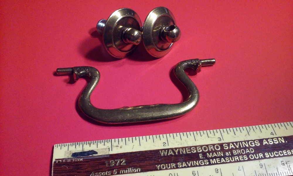 Belwith solid brass pull handle cabinet drawer single unit complete 3" Wide
