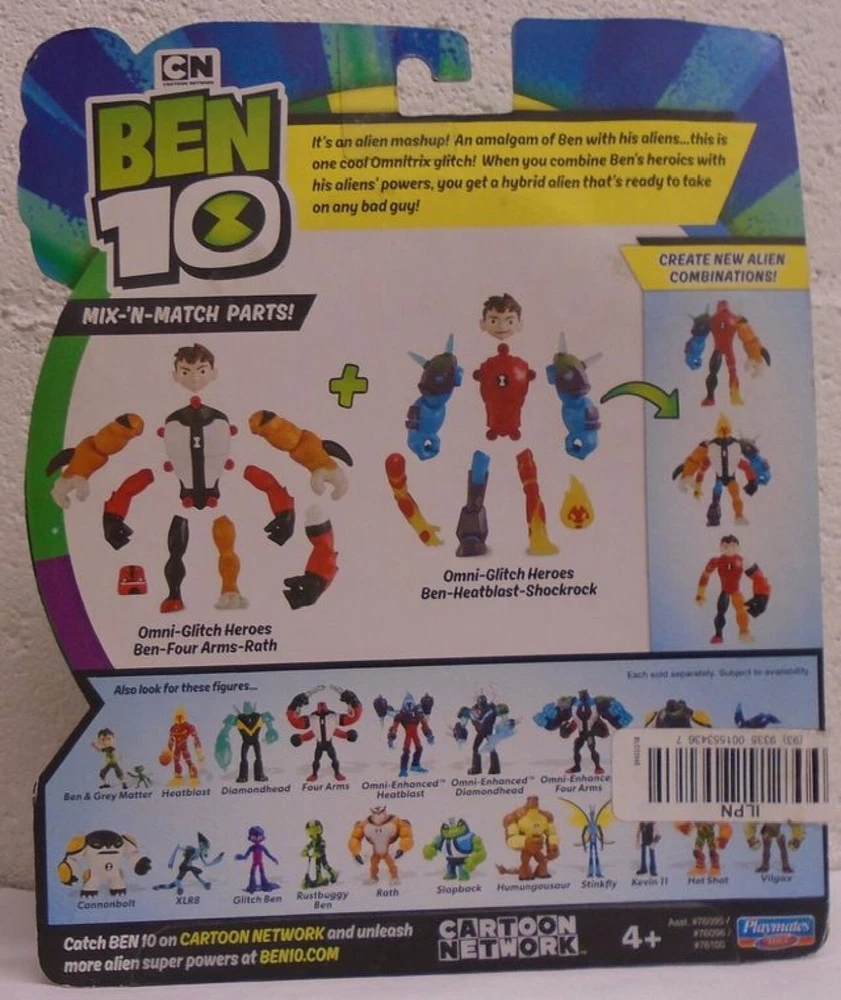 Ben 10 - 4" Omni-Glitch Heroes Ben-Heatblast-Shockrock By Playmates 2019. Includes Mix and Match Parts. Mint On Card. Card Has Minor Shelf Wear. We do combine shipping for multiple purchases. International Buyers Please Note: Import duties, taxes and charges are not included in the item price or shipping charges. These charges are the buyer's responsibility. Please check with your country's customs office to determine what these additional costs will be prior to bidding/buying. These charges are normally collected by the delivering freight (shipping) company or when you pick the item up do not confuse them for additional shipping charges. We do not mark merchandise values below value or mark items as "gifts" - US and International government regulations prohibit such behavior.