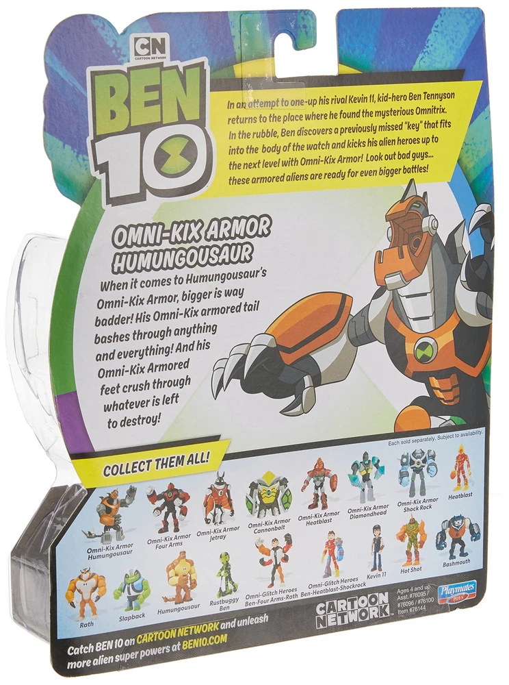 Ben 10 Omni-Kix Armor Humungosaur Basic Figure When it comes to Humungousaur’s Omni-Kix Armor, bigger is way badder! His Omni-Kix armored tail bashes through anything and everything! And his Omni-Kix Armored feet crush through whatever is left to destroy! Highly detailed, uniquely sculpted and fully articulated action figure! Figures range in height from 4" to 5" Collect all Ben 10 aliens and other characters as seen on Cartoon Network's animated series! When it comes to Humungousaur’s Omni-Kix Armor, bigger is way badder! His Omni-Kix armored tail bashes through anything and everything! And his Omni-Kix Armored feet crush through whatever is left to destroy! Shipping We offer FREE shipping on all orders! We use a selection of shipping services such as UPS, FedEx, USPS etc. We only ship to the lower 48 states, no APO/FPO addresses or PO Boxes allowed. Local pickups and combined shipping options are not provided at this time. Return You can return a product for up to 30 days from the date you purchased it. Any product you return must be in the same condition you received it and in the original packaging. Please keep the receipt. Payment We accept payment by any of the following methods: PayPal Please pay as soon as possible after winning an auction, as that will allow us to post your item to you sooner! Feedback Customer satisfaction is very important to us. If you have any problem with your order, please contact us and we will do our best to make you satisfied. Contact Us If you have any queries, please contact us via ebay. We usually respond within 24 hours on weekdays. Please visit our eBay store to check out other items for sale! Thank you for shopping at our store.