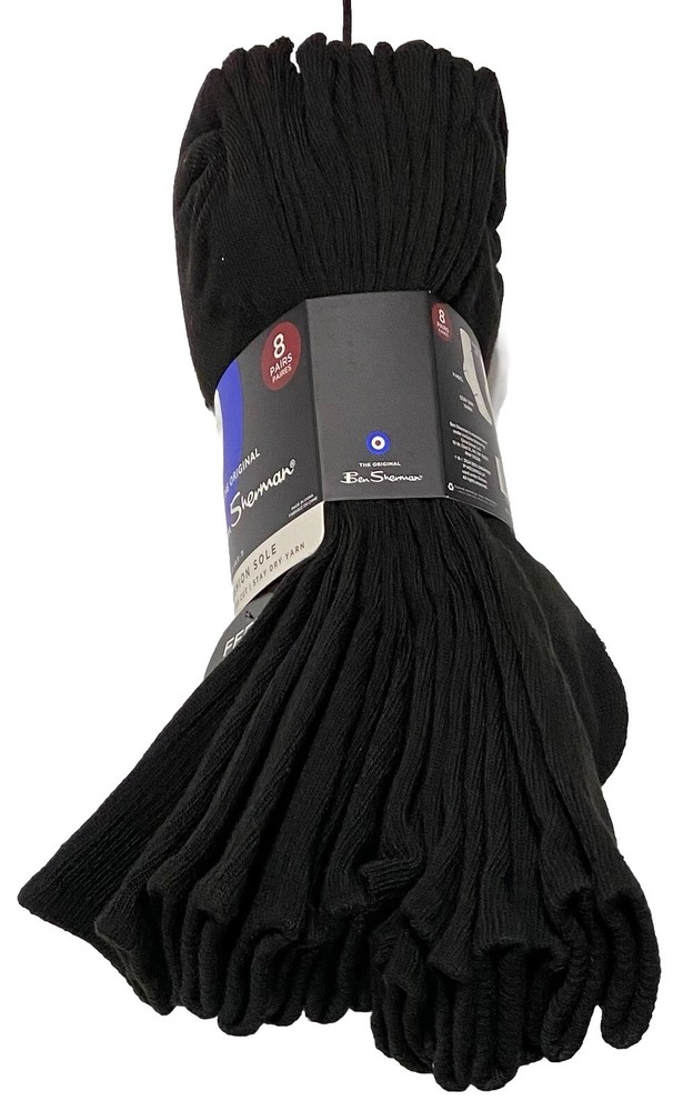 The Original Ben Sherman Men's Cushioned 8 -Pair High Quarter Cut Socks 97% Polyester 3% Spandex Black Sock Size 10-13 fits U.S. Shoe Size 6-12