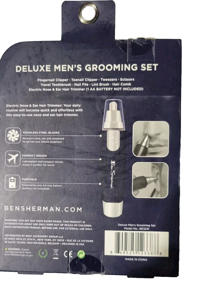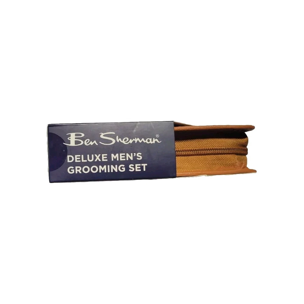 Ben Sherman Deluxe Men's Grooming Set, New In Original Packaging. Cones in a nice leather travel case that zippers shut. Has all the essential tools a gentleman would need while traveling. Brand new in the original packaging. Never used.