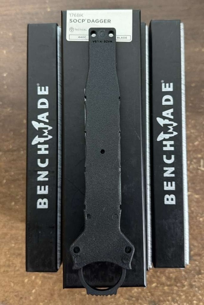 Benchmade 176BK SOCP Dagger Black Sheath Fixed Blade Knife with free shipping The Benchmade 176BK SOCP Dagger Fixed Blade Knife is a tactical-grade, high-performance knife designed for precision, durability, and dependable use in demanding situations. Featuring a high-quality stainless steel dagger blade with a black-coated finish, this knife delivers superior edge retention, corrosion resistance, and a razor-sharp point for piercing and tactical applications. Its symmetrical double-edged design makes it ideal for controlled thrusting and precise cutting.Built for strength and reliability, the 176BK SOCP has a full tang construction that ensures maximum durability under heavy use. The ergonomic handle provides a secure and comfortable grip, even during extended wear, and is designed to give the user complete control over the blade. The knife comes with a custom black sheath that allows for convenient carry and quick access, whether worn on a belt or tactical gear.This fixed-blade knife is crafted with Benchmade’s signature attention to detail and high-quality materials, making it a trusted choice for military, law enforcement, collectors, and outdoor enthusiasts who require a robust and dependable tactical knife. With free shipping included , the Benchmade 176BK SOCP Dagger is ready for immediate use straight out of the box, combining functionality, durability, and sleek tactical styling in one compact package. Key Features Model: Benchmade 176BK SOCP Dagger Blade type: Fixed blade, double-edged dagger Blade material: High-quality stainless steel with black-coated finish Blade design: Symmetrical double-edged for precise piercing and cutting Full tang construction for maximum strength and durability Ergonomic handle for secure and comfortable grip Includes black sheath for safe carry and quick access Ideal for tactical, military, law enforcement, and outdoor use Precision Benchmade craftsmanship and quality materials Compact, lightweight design for portability and ease of use Free shipping included Item Contains Benchmade 176BK SOCP Dagger fixed blade knife Original Benchmade protective black sheath Factory protective packaging Manufacturer paperwork Warranty information card Care and maintenance instructions Original product box About This Item The Benchmade 176BK SOCP Dagger Fixed Blade Knife is a high-performance tactical knife designed for reliability, precision, and durability in demanding situations. It features a sharp, double-edged stainless steel blade with a black-coated finish, providing excellent edge retention, corrosion resistance, and effective piercing capability. The full tang construction ensures maximum strength, while the ergonomic handle delivers a secure and comfortable grip for controlled handling. This knife comes with a custom black sheath for safe, convenient carry and quick access, making it ideal for tactical, military, law enforcement, or outdoor use. Crafted with Benchmade’s renowned attention to detail and superior materials, the 176BK SOCP Dagger combines functionality, durability, and sleek tactical design. With free shipping included , it’s ready to use straight out of the box.