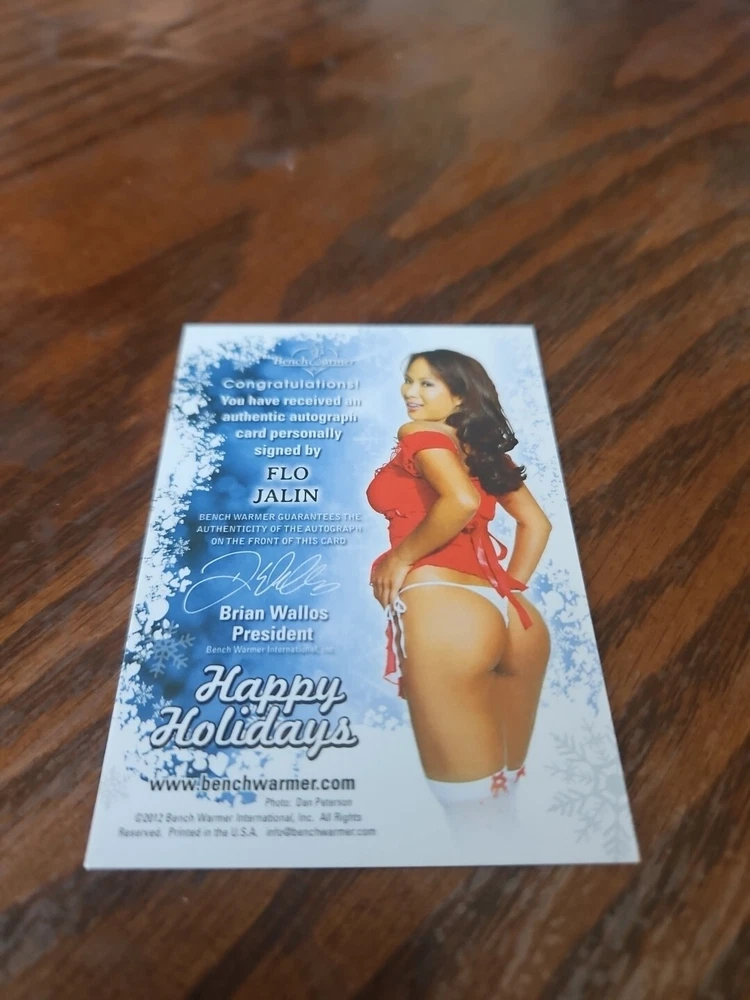Benchwarmer 2012 Flo Jalin Happy Holidays Autograph Gold Foil Card Auto Playboy Flo Jalin is known for Son of the Beach (2000) , Street Fury: Inferno (2003) and Top Ten Hawaiian Beach Resorts (2003) . Miss Venus Swimwear 1999, Hawaiian Tropic, Baywatch. Please, look at all the pictures. Please check out my other eBay accounts... https://www.ebay.com/usr/kimmyrael https://www.ebay.com/usr/matlac99 https://www.ebay.com/usr/lacr6837 https://www.ebay.com/usr/malac9440 https://www.ebay.com/usr/lacr_3567 https://www.ebay.com/usr/lacroki8 https://www.ebay.com/usr/lacroki9 Shipping only to the continental US unless you contact me first. Will combine shipping!!!