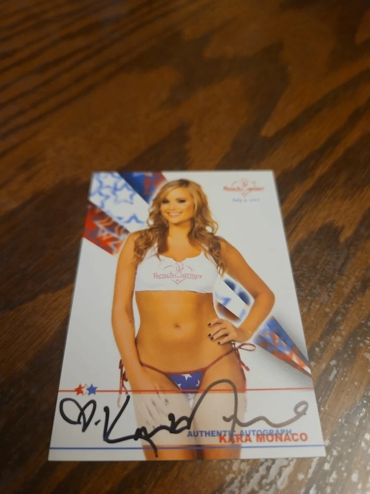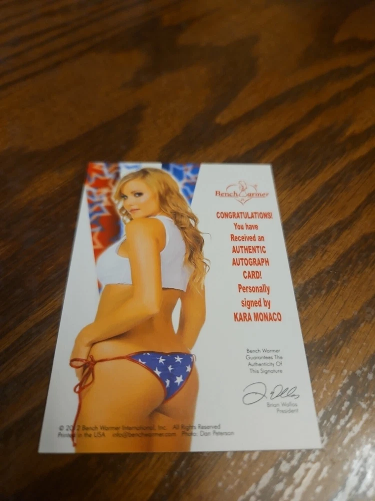 Benchwarmer 2012 Kara Monaco July 4th Autograph Patriotic Card Auto Playboy This is currently the only one on eBay. Kara Monaco was born on February 26th, 1983 in Lakeland, Florida. Prior to becoming a Playmate, she worked as a bartender, modeled swimwear and lingerie in Florida, and appeared in FHM and Men's Fitness magazines. Kara also worked at Disney World, where she was one of the performers who portrayed "Cinderella" and "Snow White" in the resort. Her connection with Playboy began when she chosen as one of "Playboy's Sexiest Bartenders 2004" and when appeared on the cover of "Playboy Special Edition Girls of Summer" in August 2004. Later, was chosen as Playmate of the Month by Playboy Magazine in June 2005. That same year, she participated in a home video fitness program, Envy (2007) , under the name "Vala" (the "V" in "Envy"), and acted together with C.J. Gibson , sister of Playmate Raquel Gibson . In June 2006, was chosen as Playmate of the Year and, later, she appeared in episodes of E! reality TV series The Girls Next Door (2005) . Also appeared in the 2006 "Playmates at Play" swimsuit calendar, shot in Las Vegas. Please, look at all the pictures. Please check out my other eBay accounts... https://www.ebay.com/usr/kimmyrael https://www.ebay.com/usr/matlac99 https://www.ebay.com/usr/lacr6837 https://www.ebay.com/usr/malac9440 https://www.ebay.com/usr/lacr_3567 https://www.ebay.com/usr/lacroki8 https://www.ebay.com/usr/lacroki9 Shipping only to the continental US unless you contact me first. Will combine shipping!!!