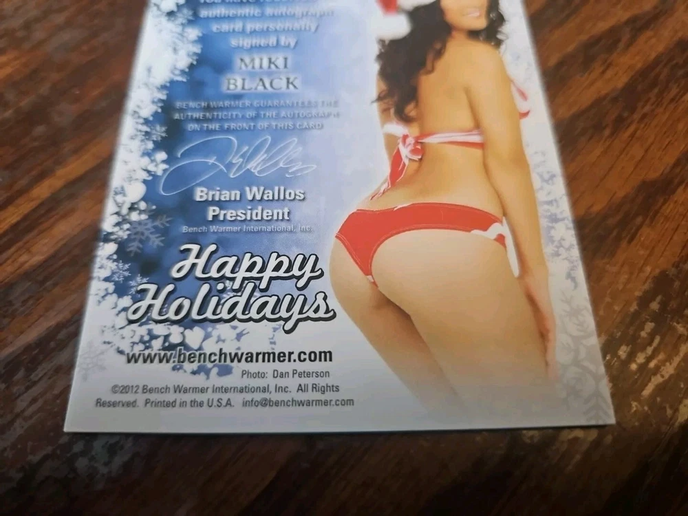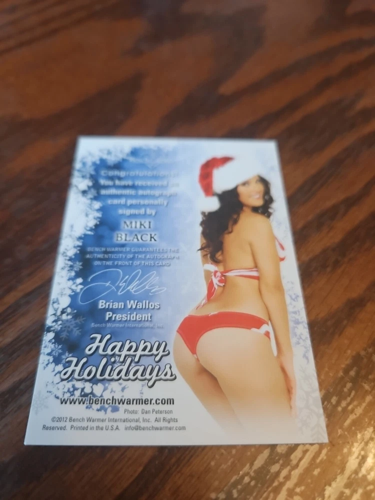 Benchwarmer 2012 Miki Black Happy Holidays Autograph Gold Foil Card Auto Playboy Miki Black is known for A Winter Rose (2014) , Beyond the Trophy (2012) and Dick Little (2012) . Please, look at all the pictures. Please check out my other eBay accounts... https://www.ebay.com/usr/kimmyrael https://www.ebay.com/usr/matlac99 https://www.ebay.com/usr/lacr6837 https://www.ebay.com/usr/malac9440 https://www.ebay.com/usr/lacr_3567 https://www.ebay.com/usr/lacroki8 https://www.ebay.com/usr/lacroki9 Shipping only to the continental US unless you contact me first. Will combine shipping!!!