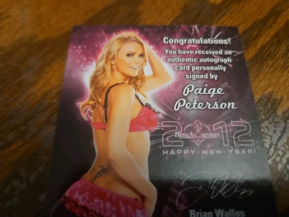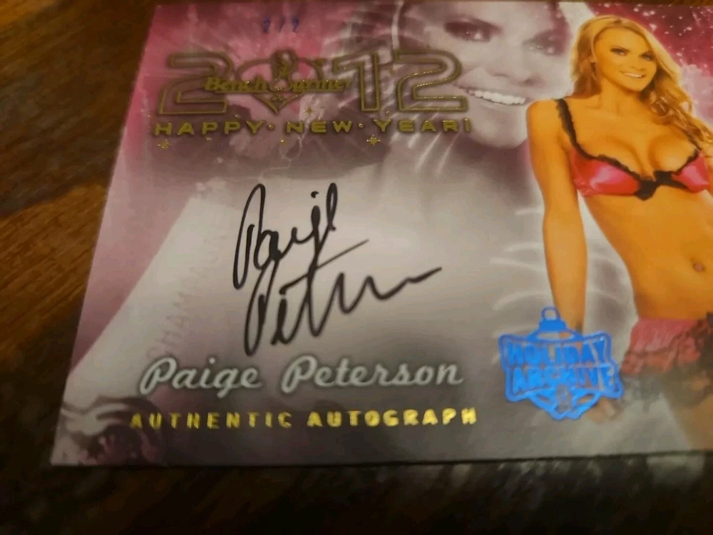 Benchwarmer 2012 Paige Peterson Happy New Year Autograph Blue Foil Holiday Archive Card #2/2 Auto Playboy Paige Ellen Peterson was born May 2nd, 1980, in Lawrence, Kansas. At an early age she developed a love for the spotlight. First performing in dance competitions and later in community theater productions. By her mid teen years Paige convinced her mother to allow her to leave Kansas and head for the hills of Hollywood. After intense acting lessons she soon landed an agent and then began life as a professional actress. Paige currently resides in the San Fernando Valley but makes plenty of trips home to the midwest each year. Please, look at all the pictures. Please check out my other eBay accounts... https://www.ebay.com/usr/kimmyrael https://www.ebay.com/usr/matlac99 https://www.ebay.com/usr/lacr6837 https://www.ebay.com/usr/malac9440 https://www.ebay.com/usr/lacr_3567 https://www.ebay.com/usr/lacroki8 https://www.ebay.com/usr/lacroki9 Shipping only to the continental US unless you contact me first. Will combine shipping!!!