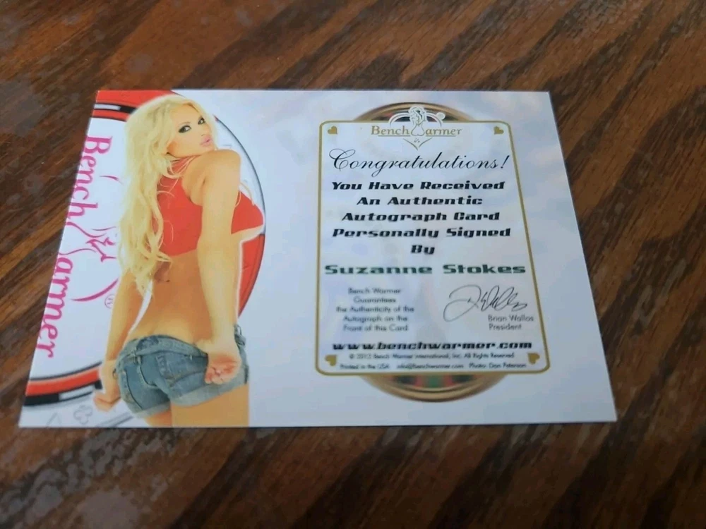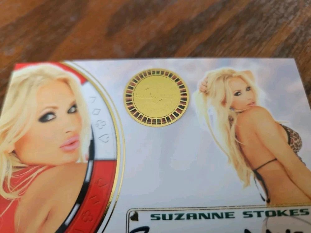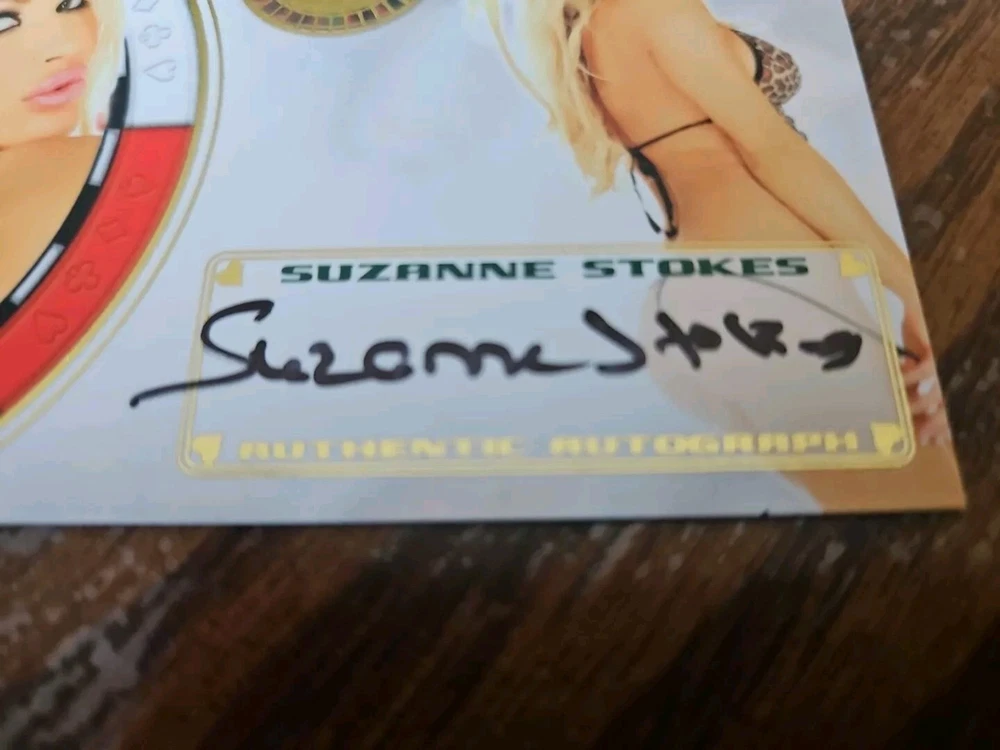 Benchwarmer 2012 Suzanne Stokes Vegas Baby Autograph Gold Foil Card Auto Playboy Luscious and voluptuous blonde bombshell Suzanne Stokes was born on July 9, 1979 in Naples, Florida. Her parents owned an alligator farm and wildlife refuge in the Everglades. At age sixteen Stokes moved out of her parents' home to live with her friend. Following graduation from high school in 1997, Suzanne moved to Miami, Florida to start her modeling career. She appeared on the cover of "Boating" magazine and various swimsuit catalogs. Moreover, Stokes also did TV commercials for foreign companies including Heineken and Ruffles. In 1999 Suzanne went to Paris, France and appeared in the instructional video "Bricol' Girls." In addition, Suzanne was the winner of three beauty pageants; she won the titles Miss Hawaiian Tropic Miami, Miss Hawaiian Tropic United States in 1999 and Miss Photogenic at the international final of Miss Hawaiian Tropic in 2000. Suzanne was named Miss February 2000 Playboy Playmate. Please, look at all the pictures. Please check out my other eBay accounts... https://www.ebay.com/usr/kimmyrael https://www.ebay.com/usr/matlac99 https://www.ebay.com/usr/lacr6837 https://www.ebay.com/usr/malac9440 https://www.ebay.com/usr/lacr_3567 https://www.ebay.com/usr/lacroki8 https://www.ebay.com/usr/lacroki9 Shipping only to the continental US unless you contact me first. Will combine shipping!!!