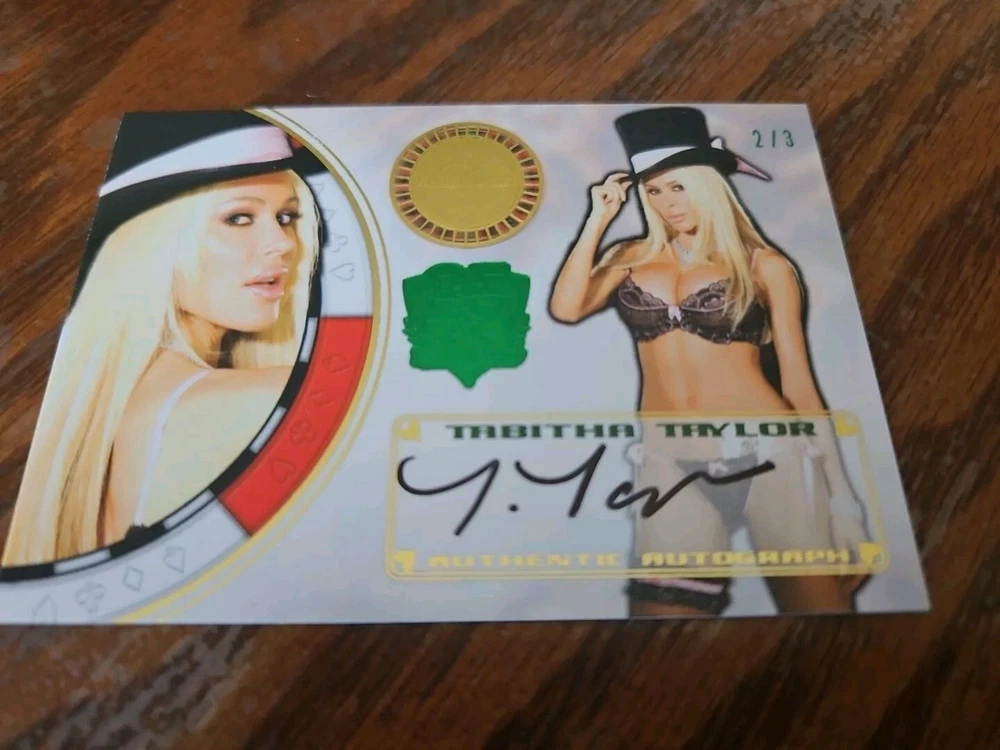 Benchwarmer 2012 Tabitha Taylor Vegas Baby Autograph Green Foil 25th Anniversary Card #2/3 Playboy Playmate Super Rare card with limited run of only 3. Currently the only one on eBay. Tabitha Taylor, the actress and model, is the new GoDaddy Girl, playing the "perfect body" for actress/comedian Joan Rivers, in the national ad campaign launched during the Superbowl. She has an extensive resume ranging from commercial campaigns for Dodge, Sony Playstation, Miller Lite, Comcast, and many more, to big budget features like "Dude, Where's My Car?", "Lake View Terrace", "Dirty Love", "Loaded", as well as many independent films. Her television appearances are no less impressive including starring roles in such shows as "Nip Tuck", "Southland", "Entourage", "Monk", "Beauty and the Geek", "The Best Damn Sports Show", and a long list of credits, even starring in music videos, like her role as the villain for Shakira's "Obsession Tango" hit. Tabitha is a Hawaiian native beauty, and grew up in the Los Angeles area with her parents and two sisters. Living so close to Hollywood, she was bitten by the acting bug early and studied extensively to live out her passion and dreams. Her comedic side, timing, and true natural talent, gives her the ability to transform into any role and add depth to any character, whether it be drama or comedy. Tabitha is also a successful model, but acting is certainly her first desire and focus. She has been featured in a variety of publications including Playboy, Maxim, FHM, American Curves, Muscular Development, and countless others. Her love for the craft is matched only by her hard work and dedication to give every project and producer, their true vision. She has an extensive resume in television, film, and commercials, and looks forward to building her talent, credits, and life experiences throughout her chosen career. Whether in her chosen profession of acting, or her personal life of fitness and animal rights activism, Tabitha Taylor is following the footsteps of her idol Marilyn Monroe. Her motto is simple: A strong work ethic, passion for what you love, and kindness along the way, is a life fully lived. Please, look at all the pictures. Please check out my other eBay accounts... https://www.ebay.com/usr/kimmyrael https://www.ebay.com/usr/matlac99 https://www.ebay.com/usr/lacr6837 https://www.ebay.com/usr/malac9440 https://www.ebay.com/usr/lacr_3567 https://www.ebay.com/usr/lacroki8 https://www.ebay.com/usr/lacroki9 Shipping only to the continental US unless you contact me first. Will combine shipping!!!