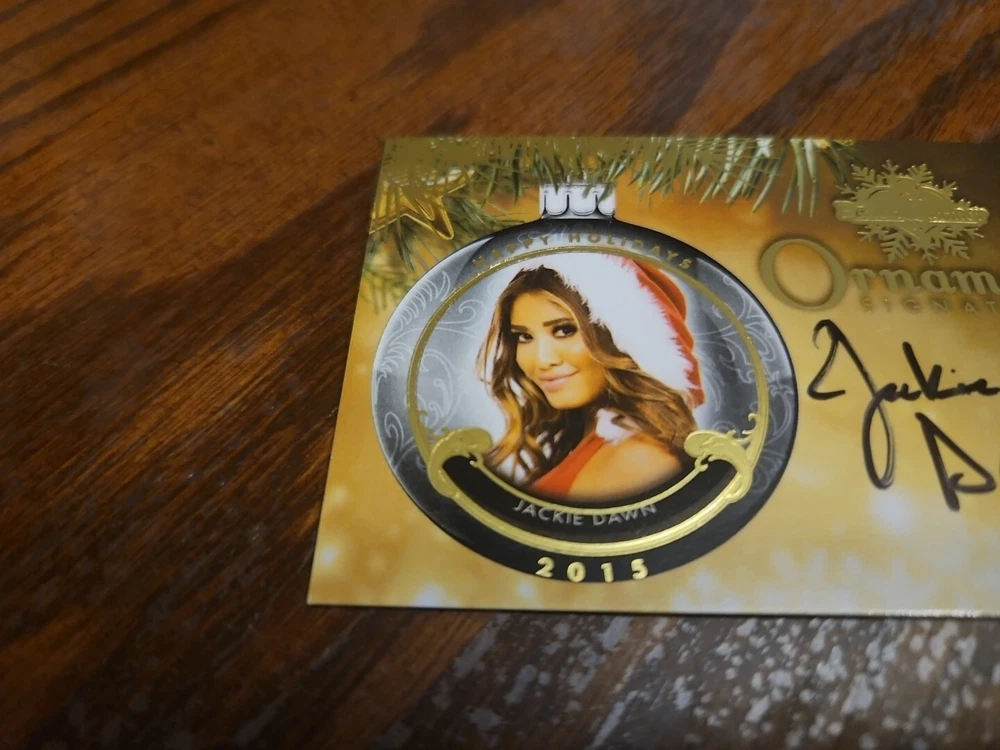Benchwarmer 2015 Jackie Dawn Happy Holidays Ornament Signatures Autograph Card Playboy Luscious and petite 5'4" brunette stunner Jackie Dawn was born on January 10, 1990 in Los Angeles, California. Of Asian and East Indian descent, Dawn grew up in Los Angeles. Jackie was encouraged by her twin sister Cassandra Dawn to pursue a modeling career as well as attend an open casting call for Playboy TV. Dawn did her first nude shoot for Playboy Plus in April, 2012. Jackie raises plants, reads fiction, and goes out for dinner and drinks with her friends in her spare time. Please, look at all the pictures. Please check out my other eBay accounts... https://www.ebay.com/usr/kimmyrael https://www.ebay.com/usr/matlac99 https://www.ebay.com/usr/lacr6837 https://www.ebay.com/usr/malac9440 https://www.ebay.com/usr/lacr_3567 https://www.ebay.com/usr/lacroki8 https://www.ebay.com/usr/lacroki9 Shipping only to the continental US unless you contact me first. Will combine shipping!!!