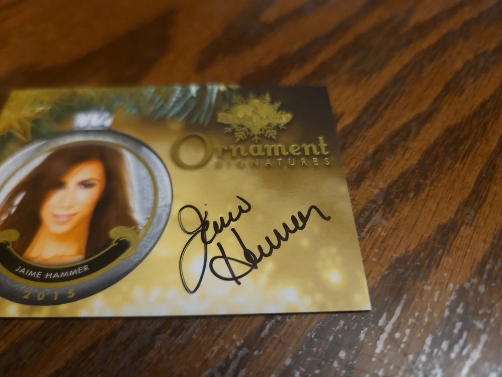 Signed By: Jaime Hammer Autographed: Yes Original/Licensed Reprint: Original Type: Non-Sport Trading Card Franchise: Benchwarmer Card Name: Jaime Hammer Featured Cards: Jaime Hammer Manufacturer: Benchwarmer Autograph Format: Hard Signed Material: Card Stock Card Size: Standard Year Manufactured: 2015 Featured Person/Artist: Jaime Hammer Features: Autograph Parallel/Variety: Gold Subject Type: Glamour Genre: Models & Playmates Country/Region of Manufacture: United States Set: Benchwarmer 2015 Holiday Language: English