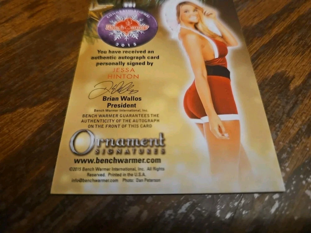 Benchwarmer 2015 Jessa Hinton Happy Holidays Ornament Signatures Autograph Card Playboy CyberGirl Please, look at all the pictures. Please check out my other eBay accounts... https://www.ebay.com/usr/kimmyrael https://www.ebay.com/usr/matlac99 https://www.ebay.com/usr/lacr6837 https://www.ebay.com/usr/malac9440 https://www.ebay.com/usr/lacr_3567 https://www.ebay.com/usr/lacroki8 https://www.ebay.com/usr/lacroki9 Shipping only to the continental US unless you contact me first. Will combine shipping!!!